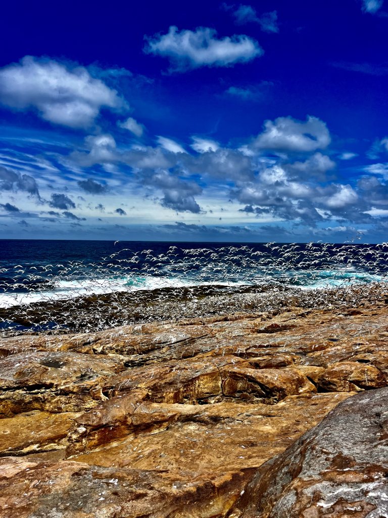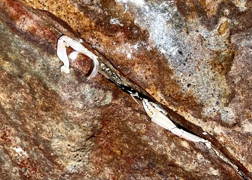 Der Weg ist gepflastert mit Krabbenüberresten 🦀. Das scheint eine wichtige Nahrungsquelle der Gefiederten zu sein. Ich mühe mich derweil die Felsen hoch.