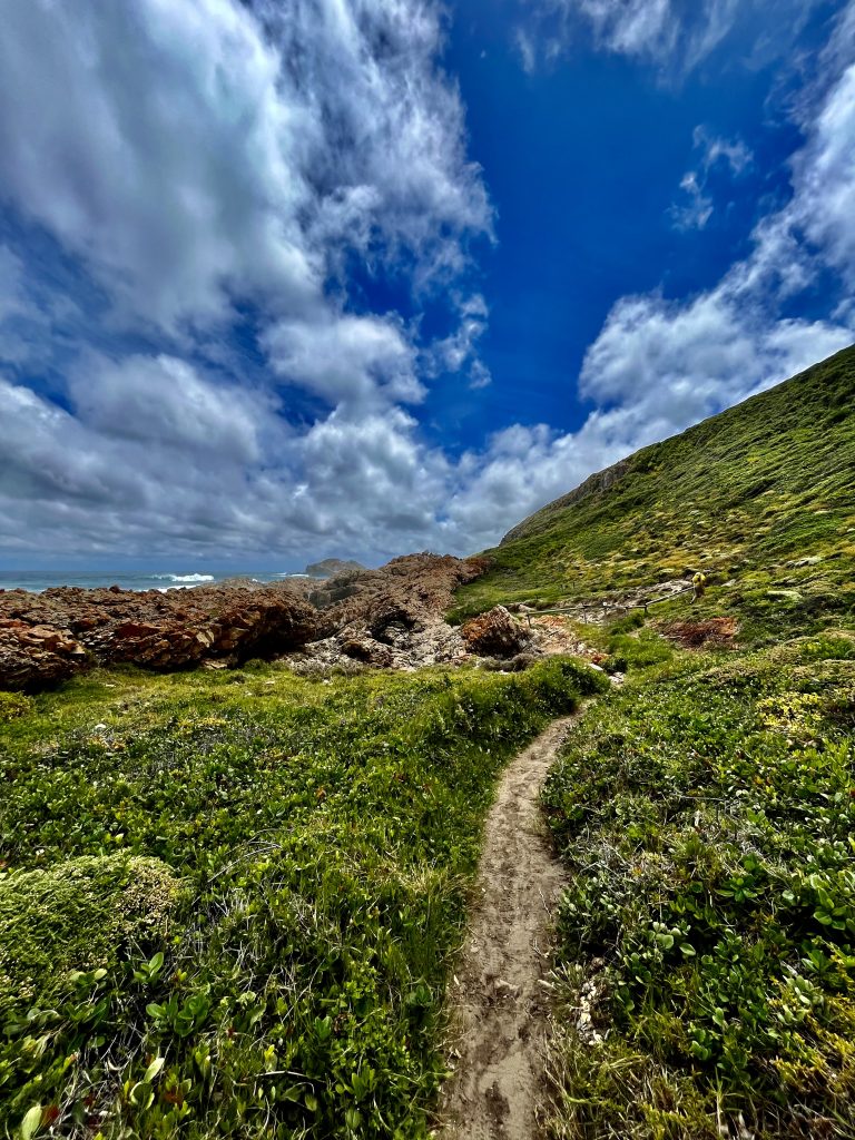Sie lärmen und stinken hundertfach den Küstenstreifen entlang. Ihre Fressfeinde, die Haie, sind nicht zu entdecken. Wir wandern weiter, der Weg ist sehr abwechslungsreich.