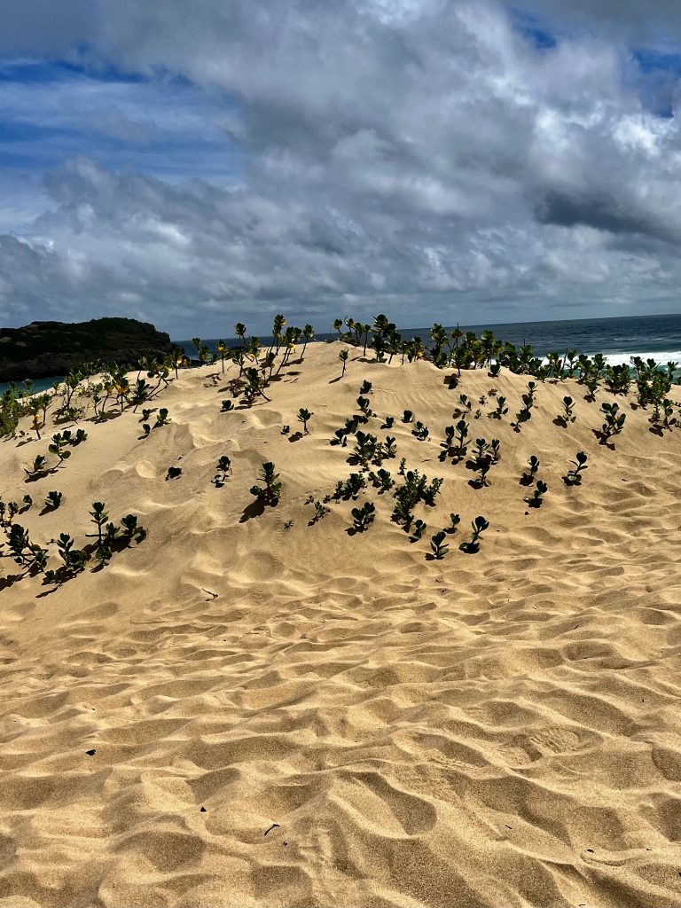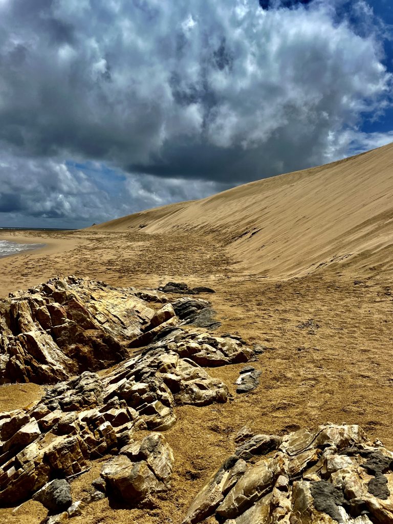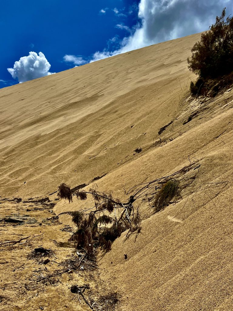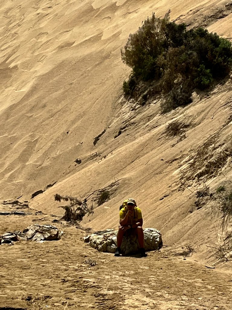 Ein richtiger Landschaftswechsel überrascht uns. Große Sanddünen müssen nun überwunden werden. Das geht in die Oberschenkel. 😮💨 Sieht aber echt toll aus!