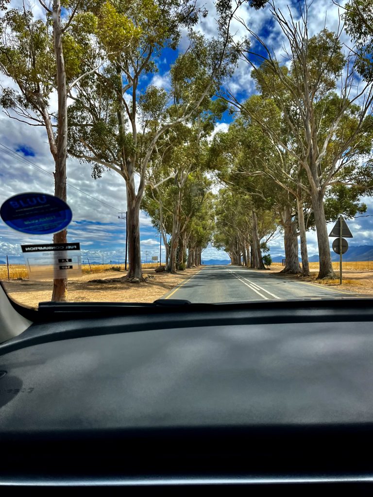Durch diese Allee noch hindurch, dann sind wir da, in Clanwilliam.