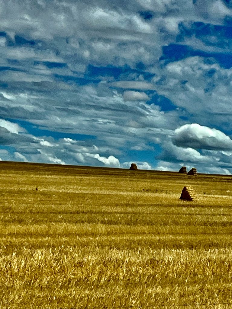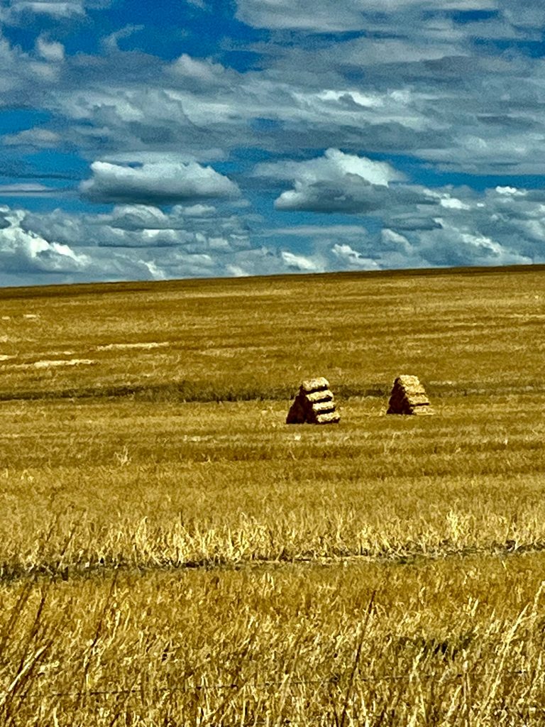 Was sind das denn für Zipfel? Kosackenzipfel?? Nee, hier werden aus dem Weizenstroh keine Rechteckballen oder Wagenräder gepresst sondern Dreiecke, lustig.