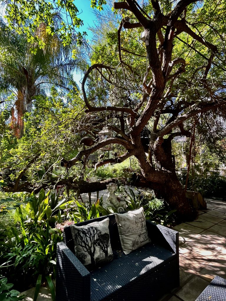genießen die tolle Aussicht, den empfohlenen Cocktail und sau leckere Gemüsechips. Das dauert. Eile hat hier niemand. Es ist sehr gechillt! Da entdecke ich mega hübsche Bäume. Sie erinnern mich ein wenig an die Baobabs von Madagaskar. Die muss ich mir von Nahem ansehen!