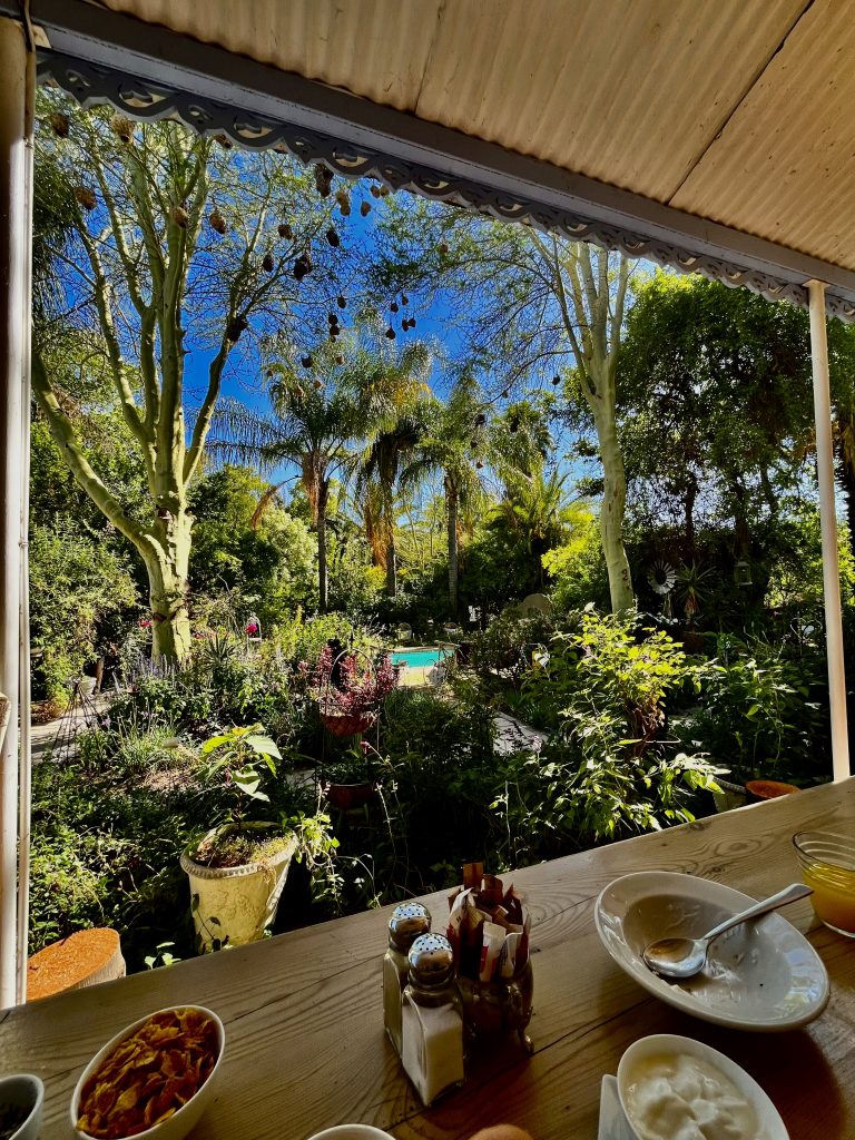Am nächsten Morgen genießen wir ein herrliches Frühstück mit Ausblick ins Paradies.