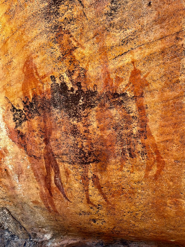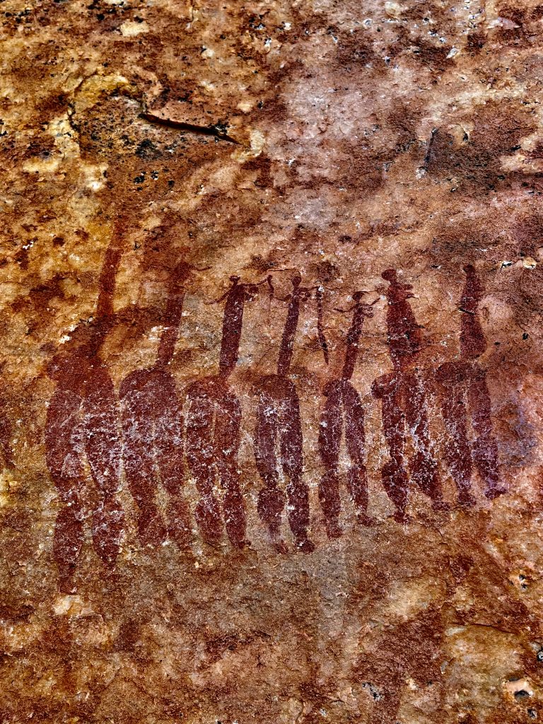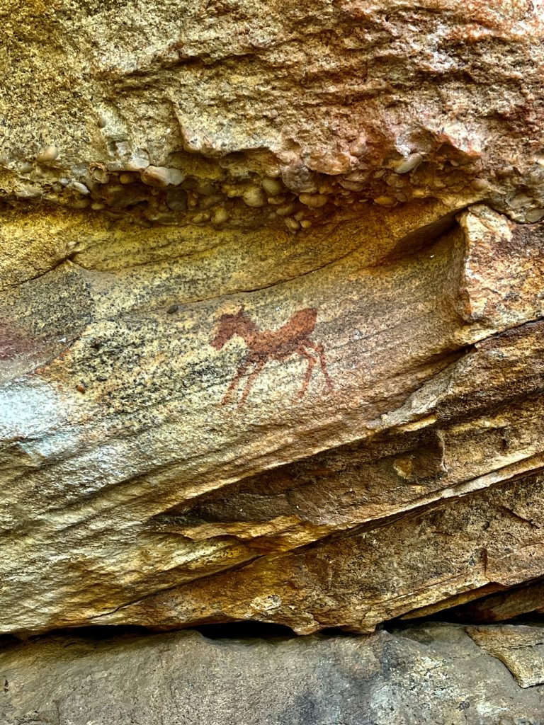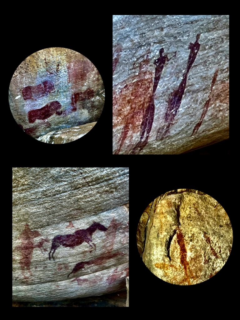 Lassen wir uns Zeit, entdecken wir hunderte von verblichenen Hinterlassenschaften. Sie stammen von den San, den Buschmenschen lang vergangener Zeiten. Was hat sie bewogen? Was wollten sie von sich weitergeben? Was ausdrücken? Man weiß es nicht wirklich und kann zu träumen beginnen.