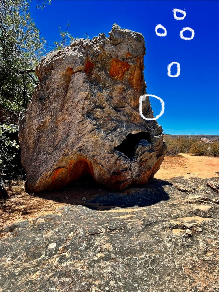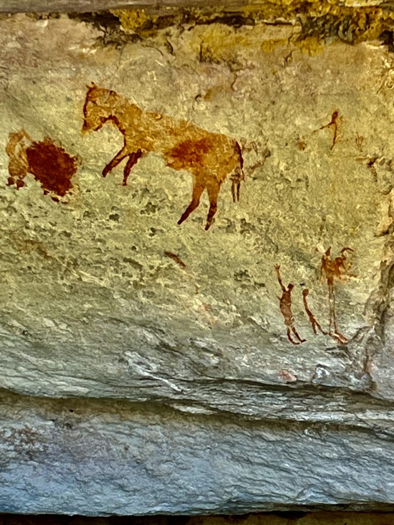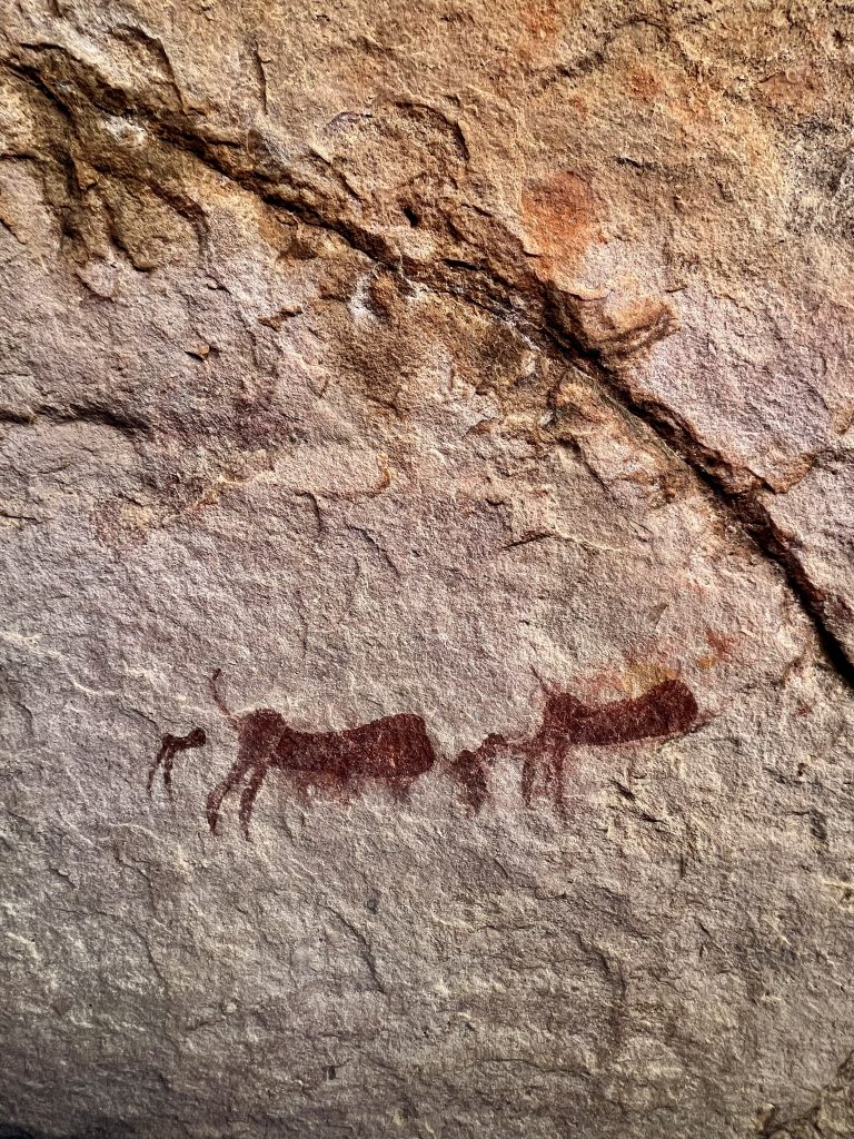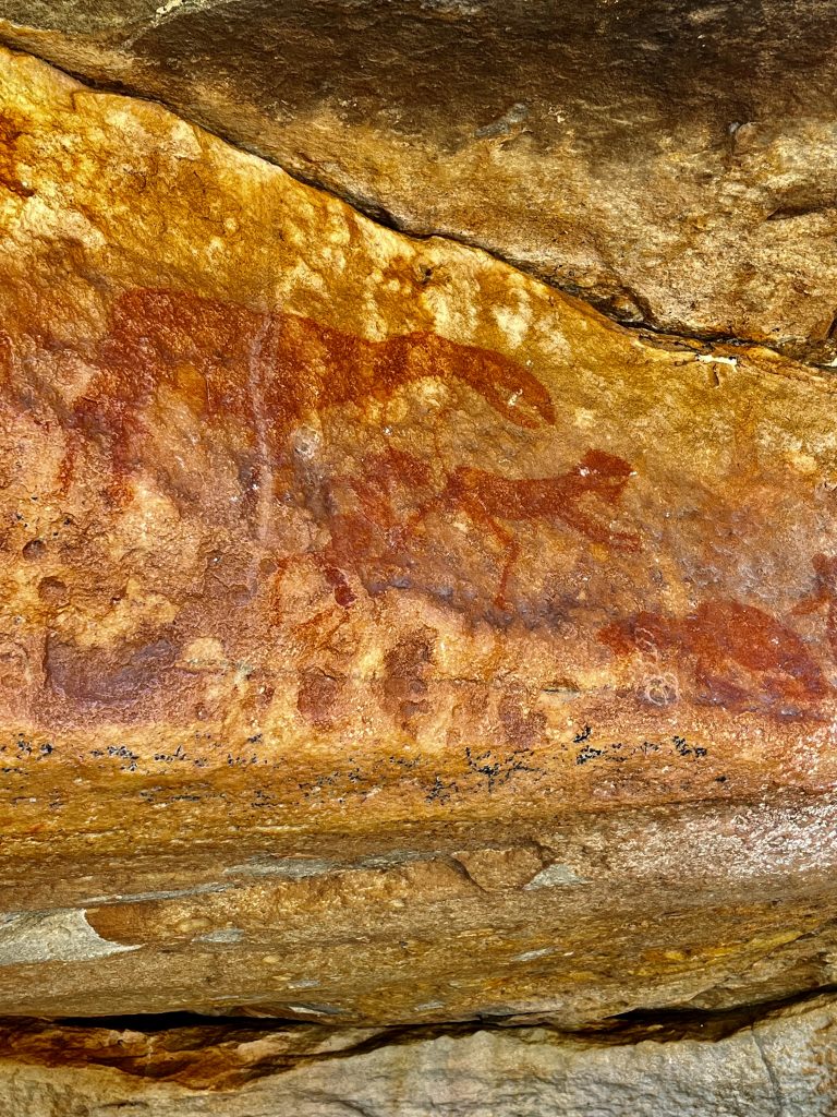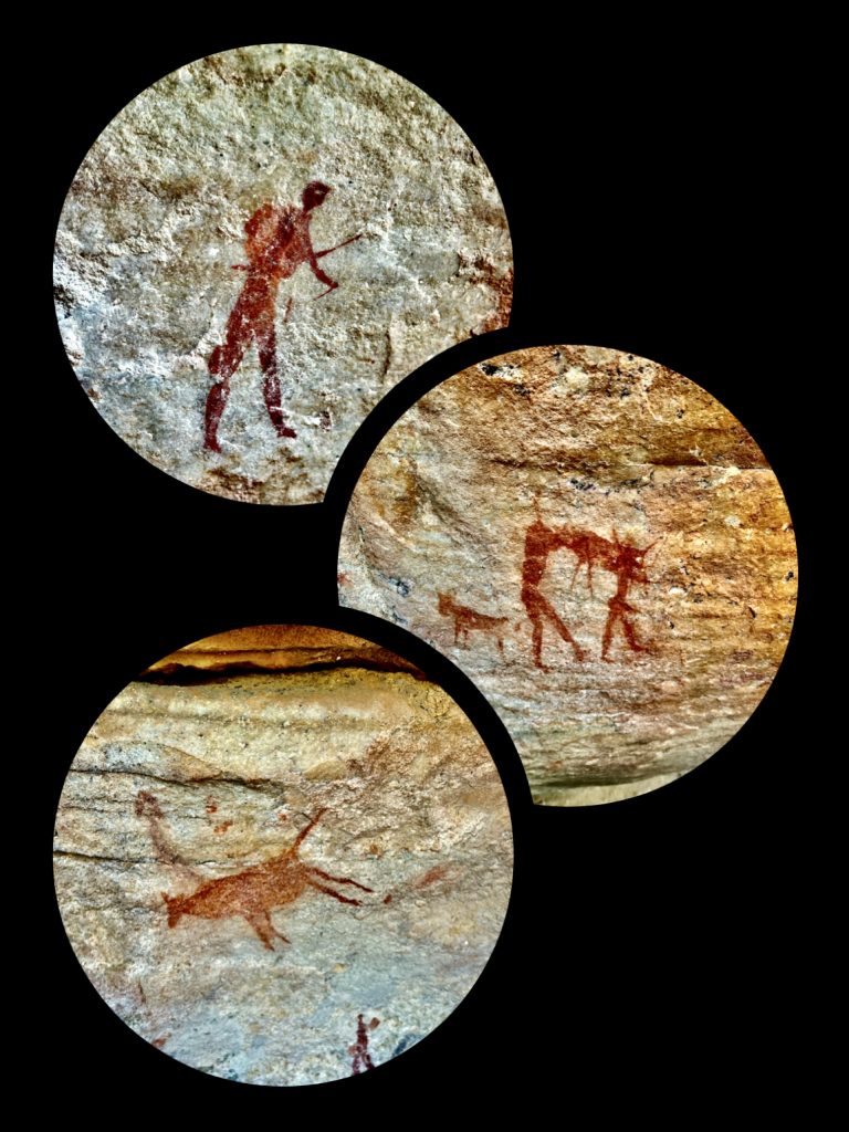 Lassen wir uns Zeit, entdecken wir hunderte von verblichenen Hinterlassenschaften. Sie stammen von den San, den Buschmenschen lang vergangener Zeiten. Was hat sie bewogen? Was wollten sie von sich weitergeben? Was ausdrücken? Man weiß es nicht wirklich und kann zu träumen beginnen.