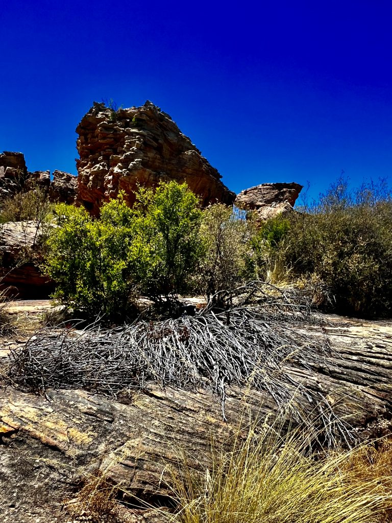 Was steckt für eine unglaubliche Arbeit in diesem Garten Eden! Ich kann es erahnen! Gestärkt für den Tag brechen wir auf, den Sevilla Rock Art Trail zu erkunden. Dieses private Gelände befindet sich zwischen Clanwilliam und Wupperthal. Echt jetzt! Los geht’s, über Wüstenstraßen und am Clanwilliam Staudamm vorbei.