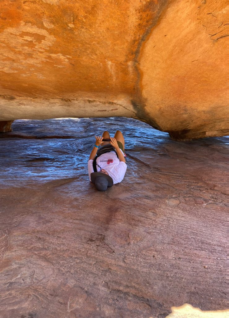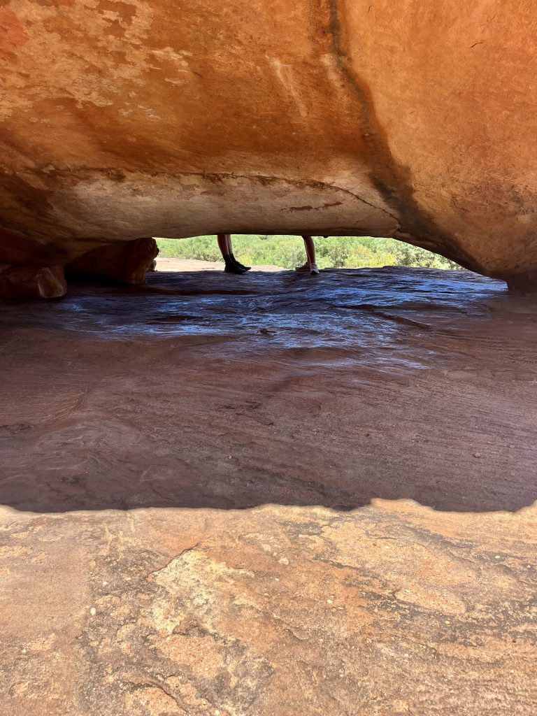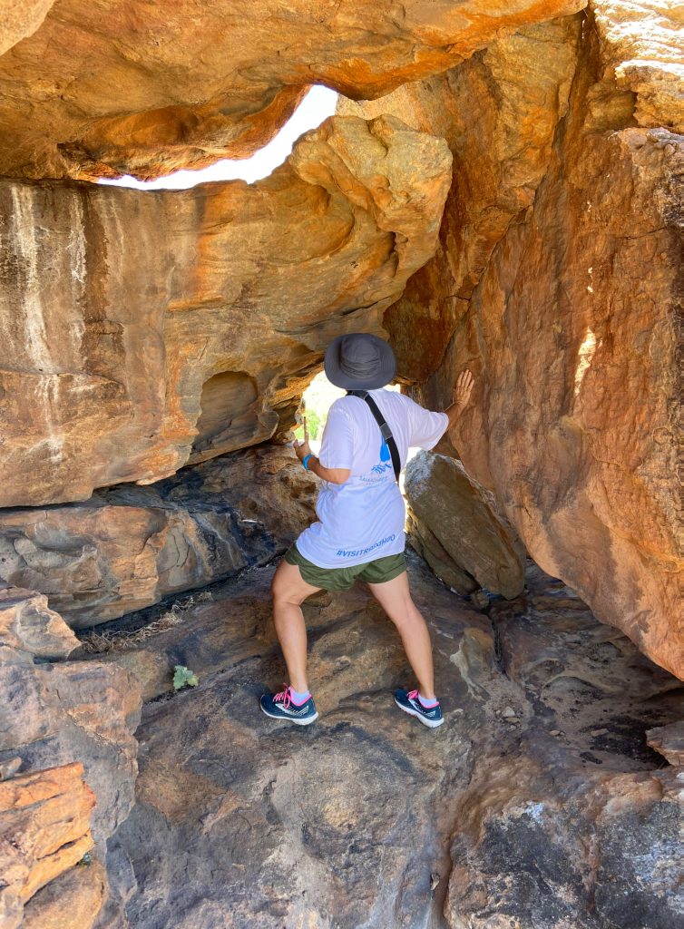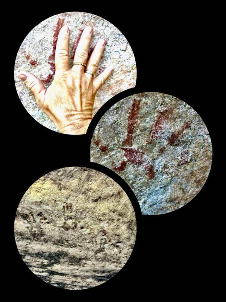Wir bezahlen unser Eintrittsgeld und starten eine spannende Schnitzeljagd. 5 km lang ist der Rundweg und führt an 9 Stationen vorbei, mit Zeichnungen im Alter von 8.000 bis 800 Jahren. Wo sind die, den Weg weisenden Fußspuren, wo die alten, an die Felsen gemalten Kunstwerke?? Die „Jagd“ beginnt…