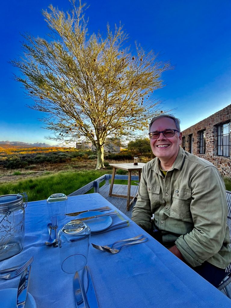 Heute Abend hat unser Gastvater, wie versprochen, einen Tisch in der Cederberg Ridge Wilderness Lodge gebucht. Dinner im 5 * Haus. Was das wohl gibt??? Wir fahren mal hin. Das Tor ist verschlossen. Wir drücken den Button, schildern unser Anliegen und werden eingelassen.
