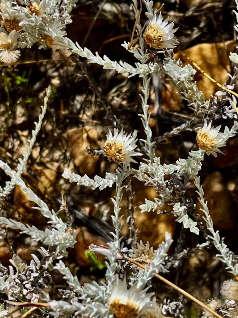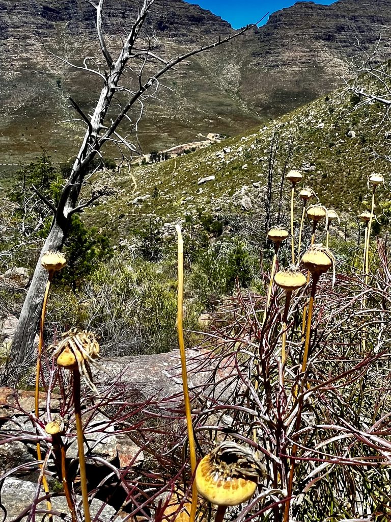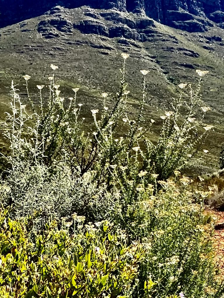 Apropos, Cederberge… Wo sind denn nun eigentlich die Cedern??? Es gibt kaum noch welche. Fast alle wurden in der Vergangenheit abgeholzt und zu Baumaterial, alten Truhen und unzähligen Telefonmasten verarbeitet. Einige krumme Exemplare zieren noch die ansonsten kahlen Steinhänge. So what… Wir kraxeln weiter und finden Blumen am Wegesrand, Trockenblumen.