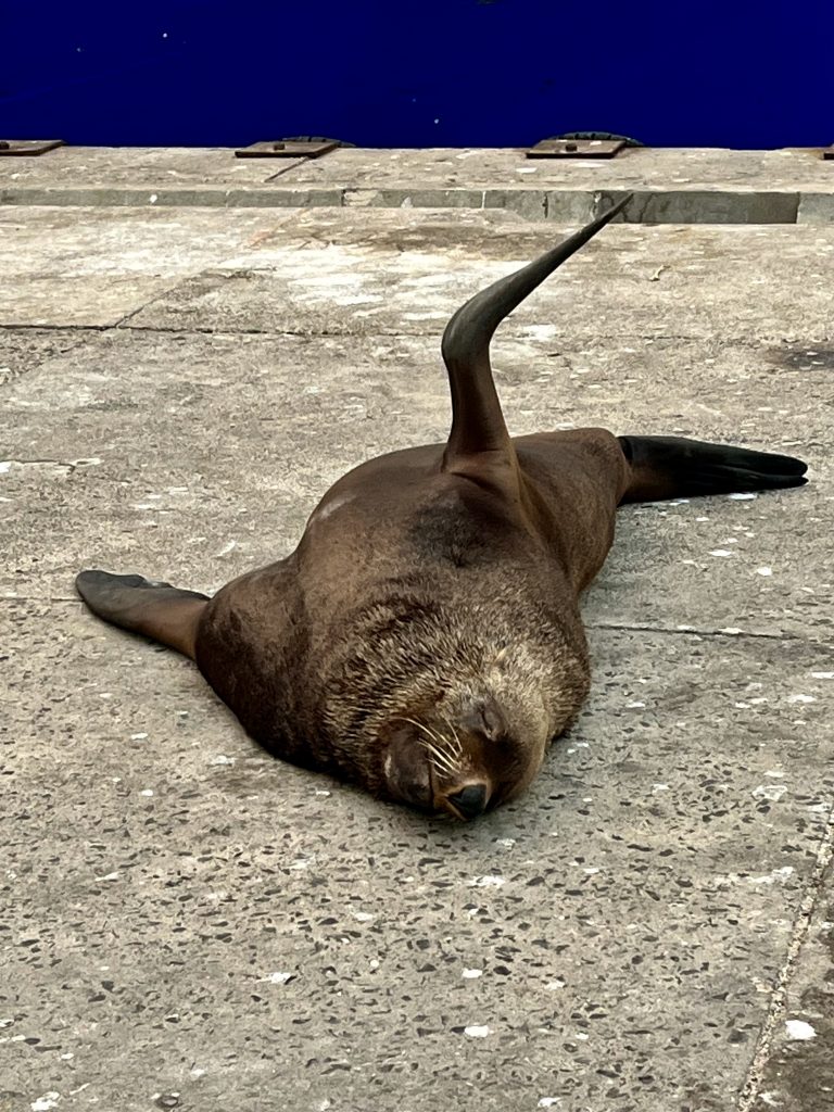 Und da sind wir wieder. Südafrika hat uns zurück. Die Flüge waren prima, das Gepäck ist vollständig da und ein Uber Taxi bringt uns flott zum Yacht Club nach Hout Bay. Die Begrüßungsrobbe winkt träge.
