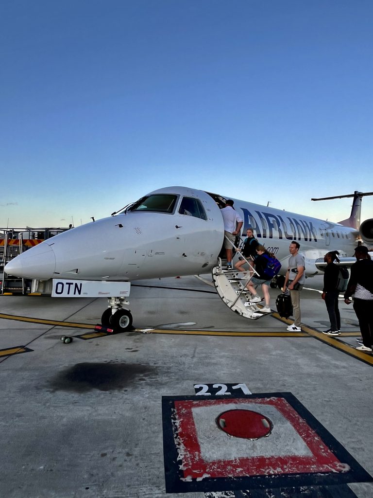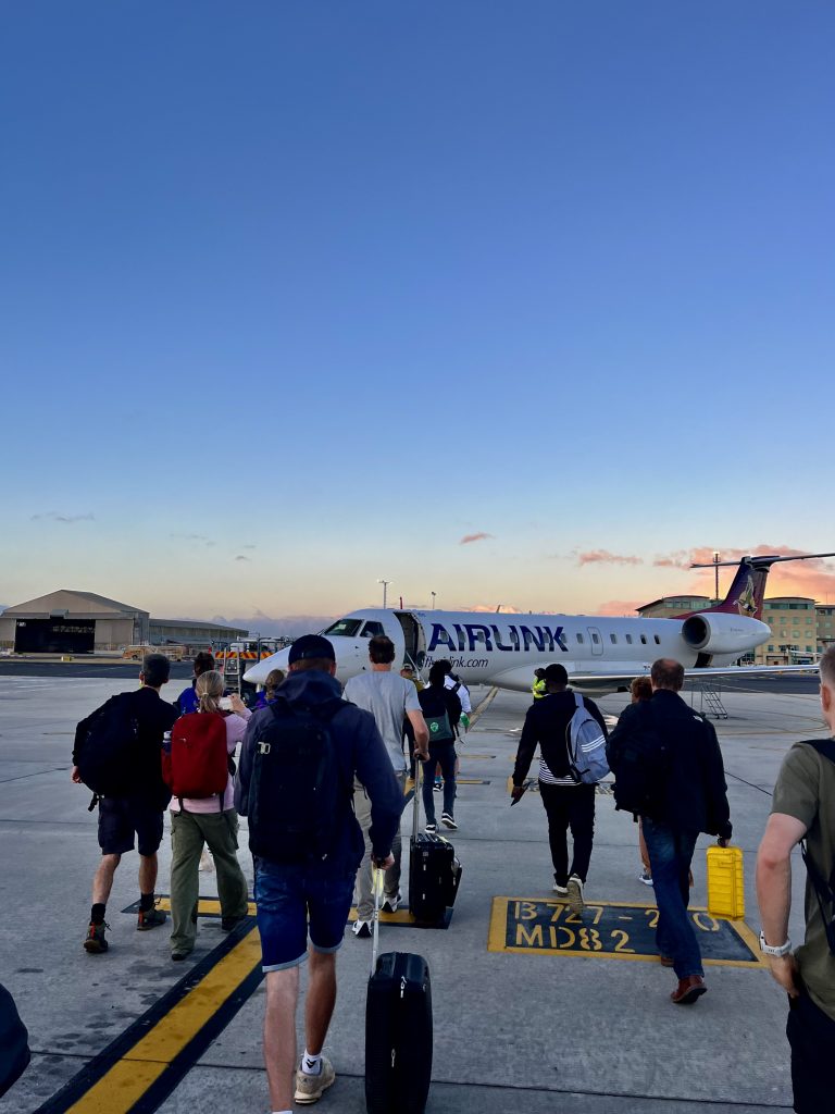 Wir besteigen das kleine Düsenflugzeug der südafrikanischen Linie Airlink