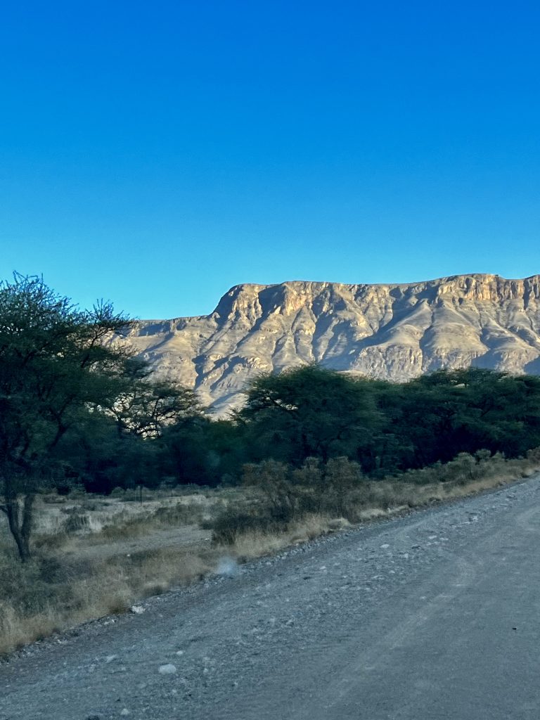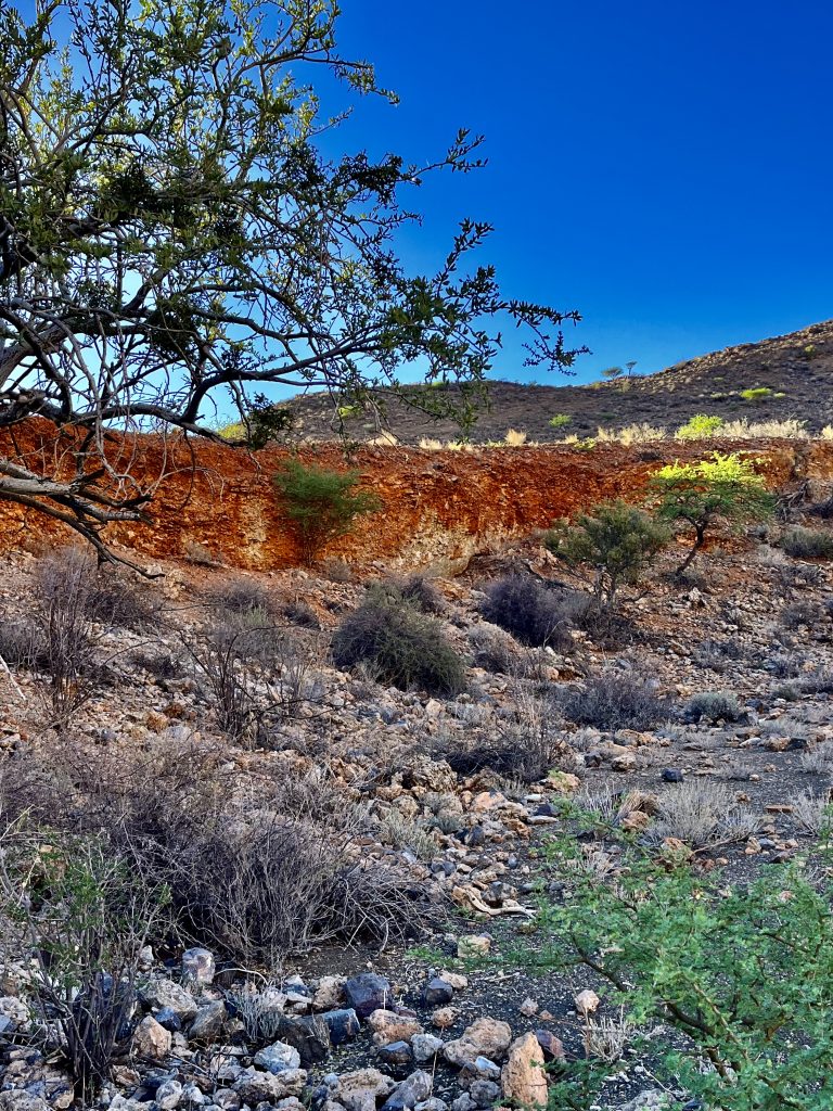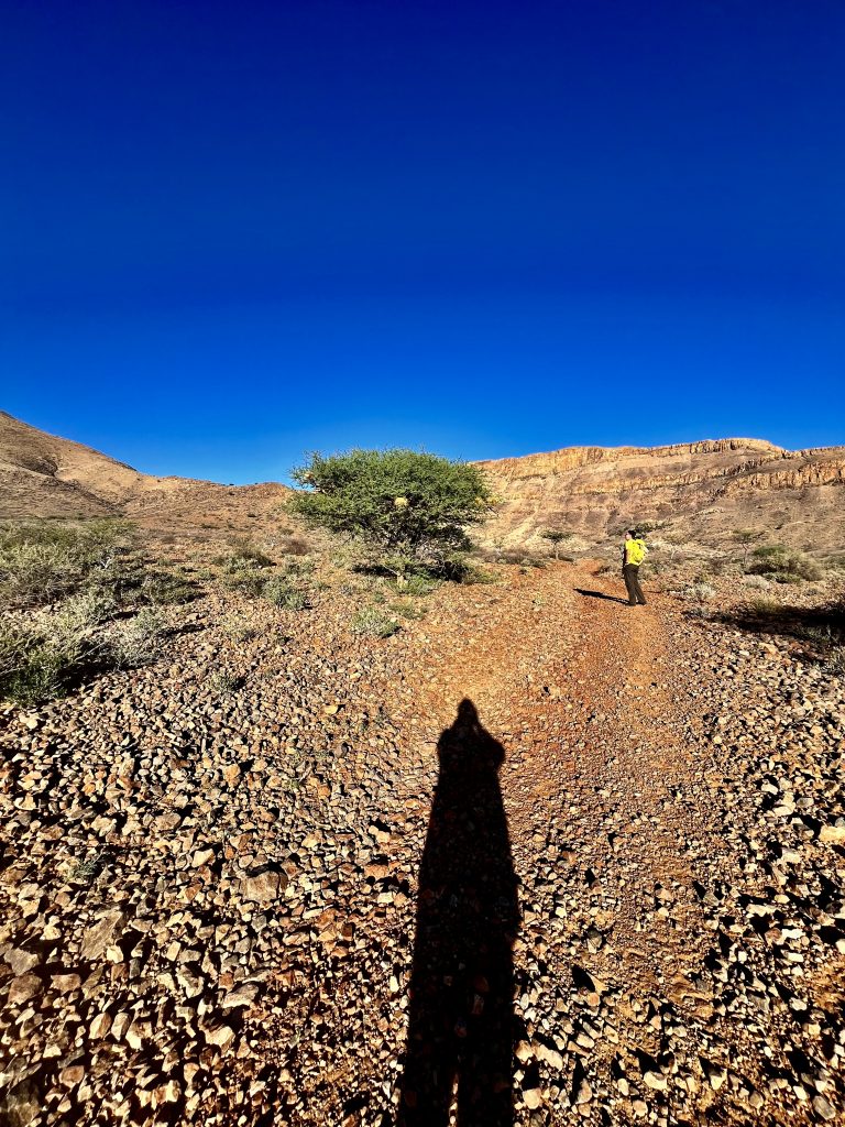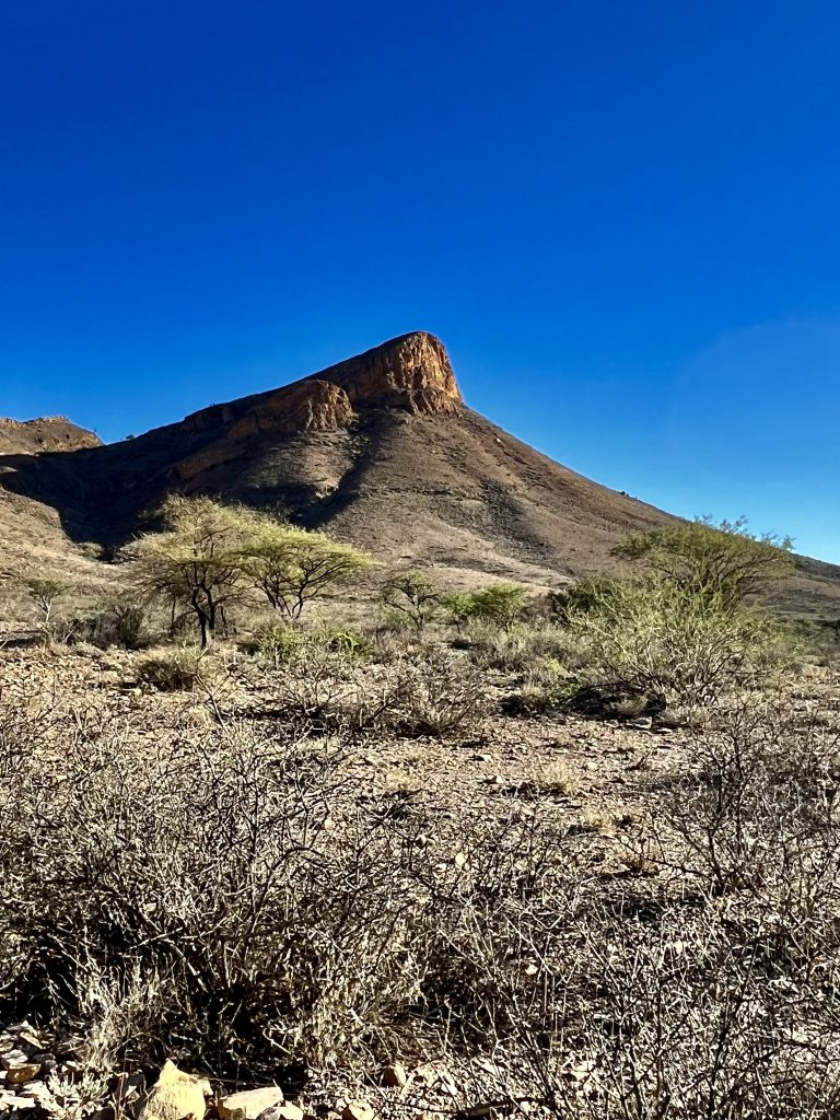 Werden wir die Bergzebras noch zu Gesicht bekommen? Oder haben wir gestern Abend das letzte gegessen? 😬 In der Tat standen sie kurz vorm Aussterben und wurden in letzter Minute durch Schutzmaßnahmen gerettet. Bis heute konnte sich die Population gut erholen. Aber sehen tun wir trotzdem kein einziges. Eine Gruppe Kudus können wir erhaschen, oder sowas Ähnliches… Wir wandern weiter, es wird langsam heiß. 🥵