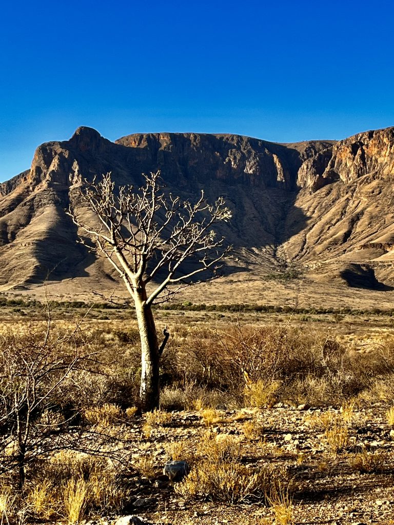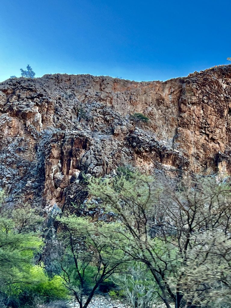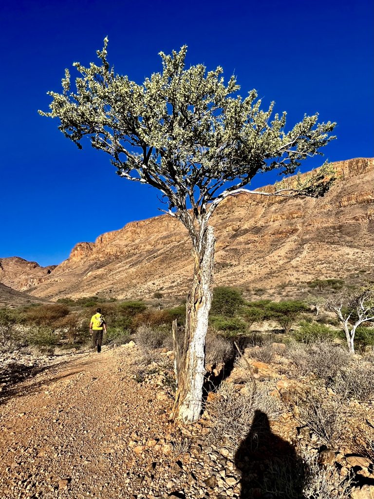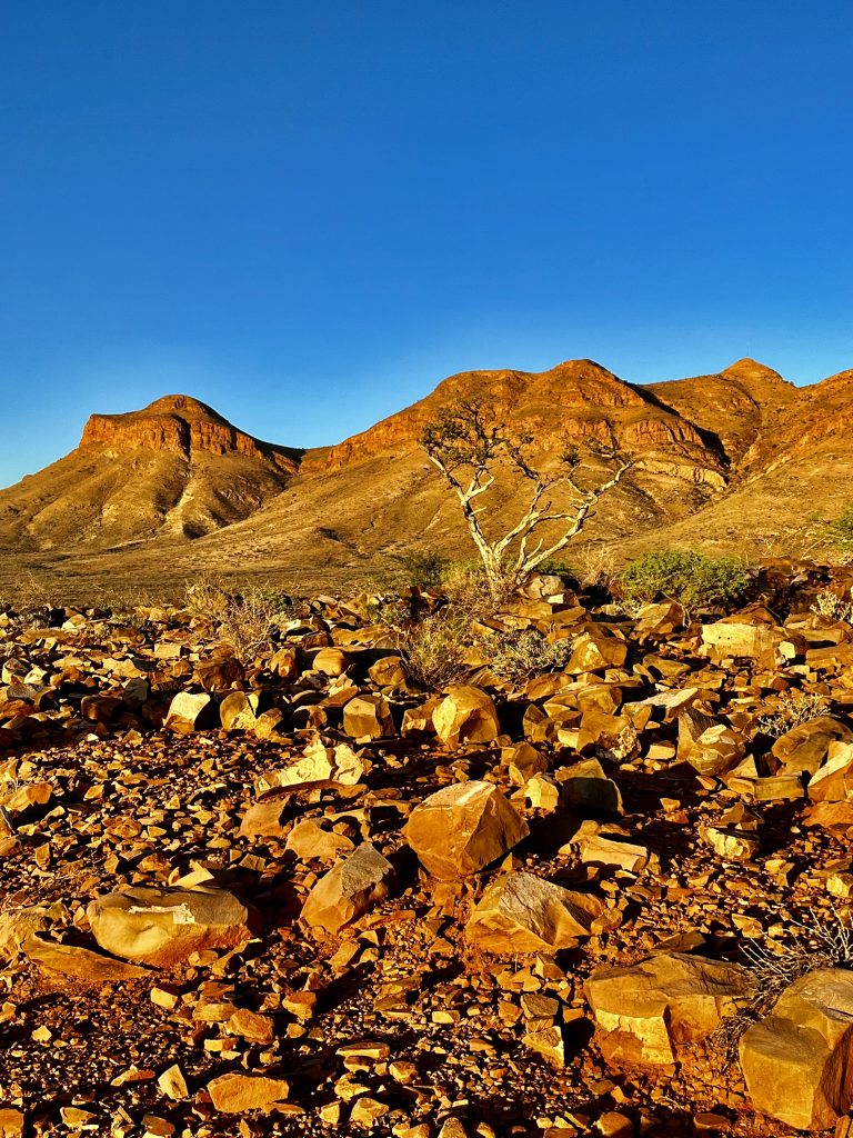 Werden wir die Bergzebras noch zu Gesicht bekommen? Oder haben wir gestern Abend das letzte gegessen? 😬 In der Tat standen sie kurz vorm Aussterben und wurden in letzter Minute durch Schutzmaßnahmen gerettet. Bis heute konnte sich die Population gut erholen. Aber sehen tun wir trotzdem kein einziges. Eine Gruppe Kudus können wir erhaschen, oder sowas Ähnliches… Wir wandern weiter, es wird langsam heiß. 🥵