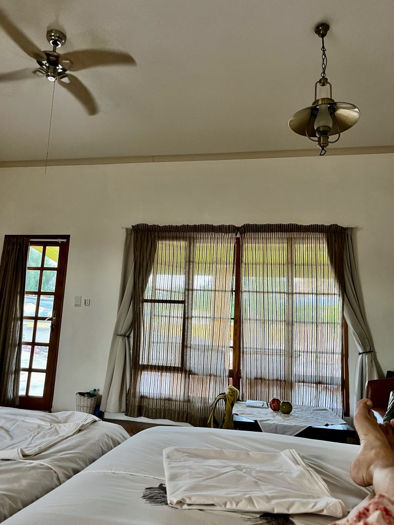Wir finden eine Mitarbeiterin, die uns erstmal resolut auf das Dinner Menü hinweist, welches nicht um 19:30 Uhr beginnt, wie geschrieben, sondern erst um 20:00 Uhr!! Wenn wir was zu Trinken wollen, müssen wir das in unseren Block schreiben, den sie aber erstmal nicht finden kann. Und unser Zimmer?? Endlich, sie bringt uns hin. Ab 15:00 Uhr sei dann die Rezeptionistin wieder da und kann uns Aktivitäten anbieten. Reiten vielleicht? In Klaus Augen steigt Entsetzen auf, auf gar keinen Fall‼️