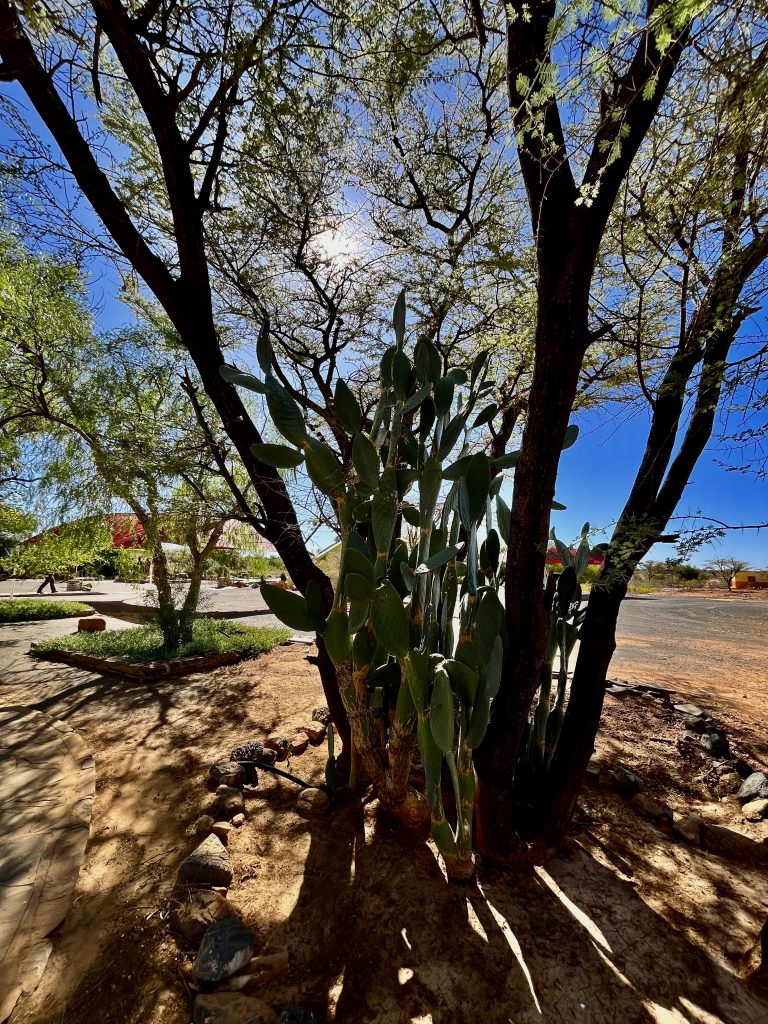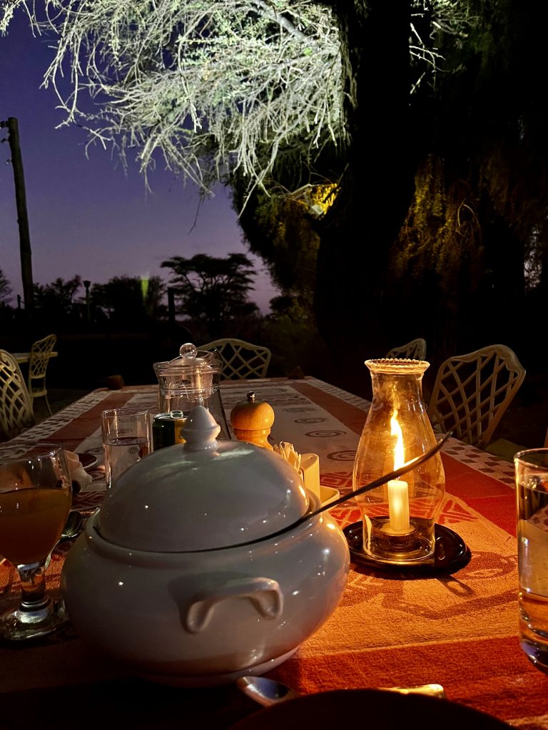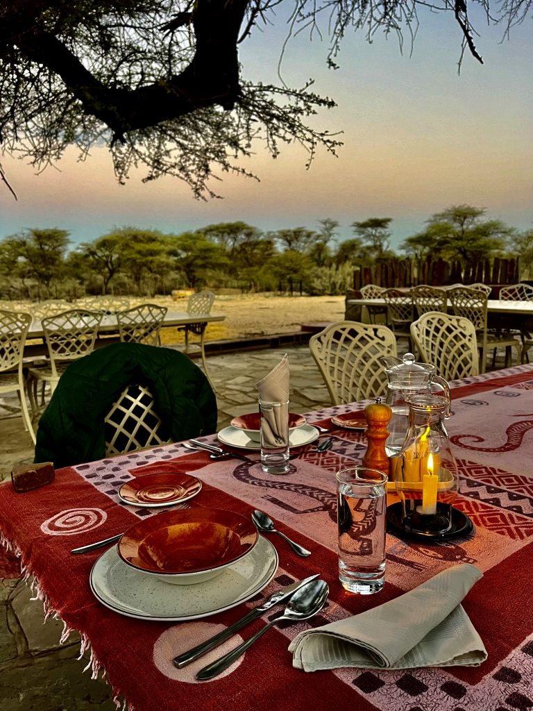 Huch, das sieht ja nett aus, aber nur für uns?? 😳 Ja, nur für uns! Wir sind die ersten und bisher einzigen Gäste im neuen Jahr, und die Saison ist ja eher im namibischen Winter. Jetzt sei ja eigentlich Regenzeit, auch, wenn kein Regen fällt. Ach sooo. Die Person, die uns vorhin begrüßt hatte, ist übrigens die Köchin des Hauses und hat wirklich nur für uns den Ofen angeschmissen… tsss.