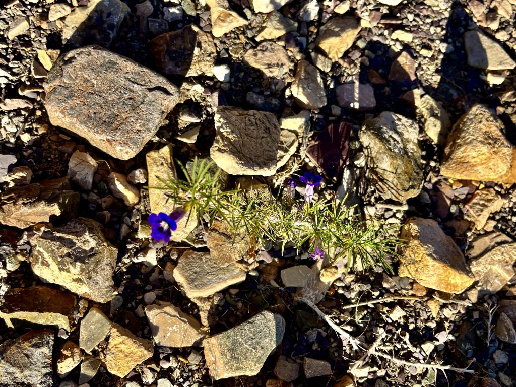 Hübsch gemaserte Steine und plötzliches Grün überraschen uns.