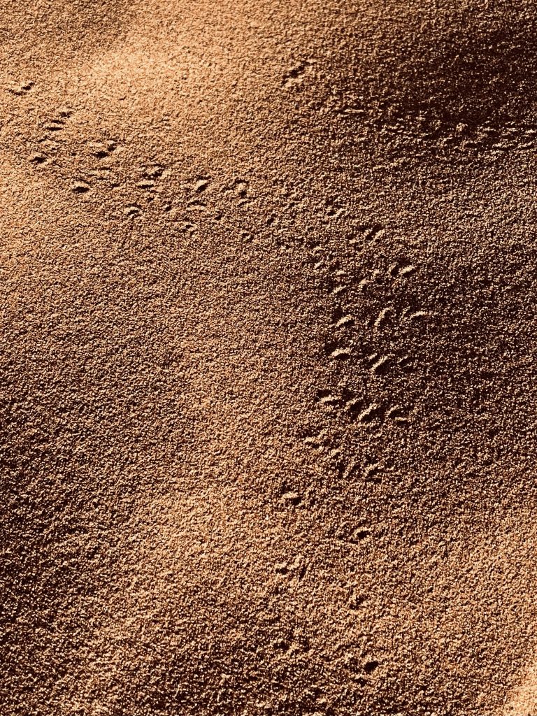 Spuren im Sand. Na da lebt ja wohl doch das ein oder andere in der Namib!