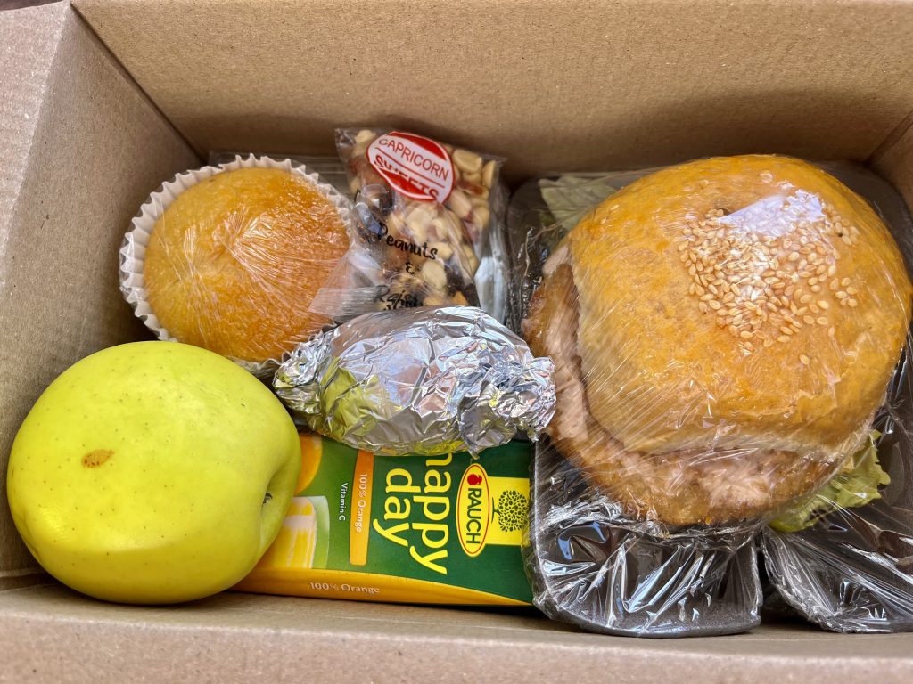 Dort angekommen, packen wir erst einmal, unter einem großen Kameldornbaum, unsere Frühstückspakete aus
