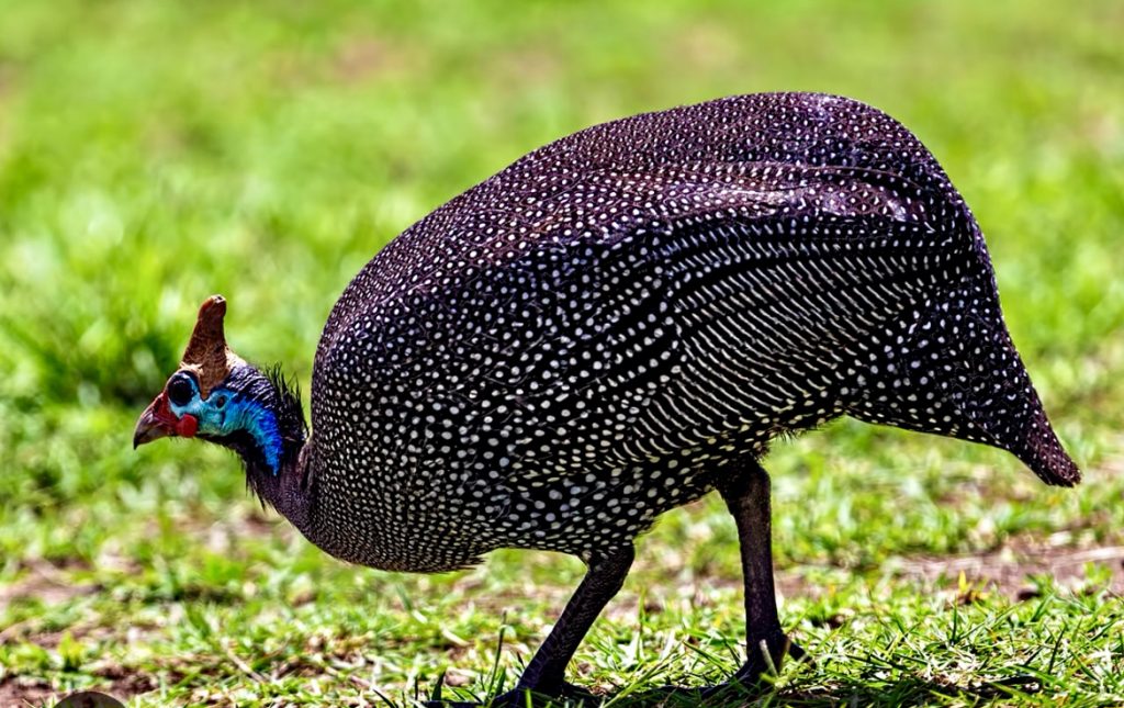 Auch hier stromern die dicklichen Perlhühner herum, sind aber immer auf der Hut. Warum nur?