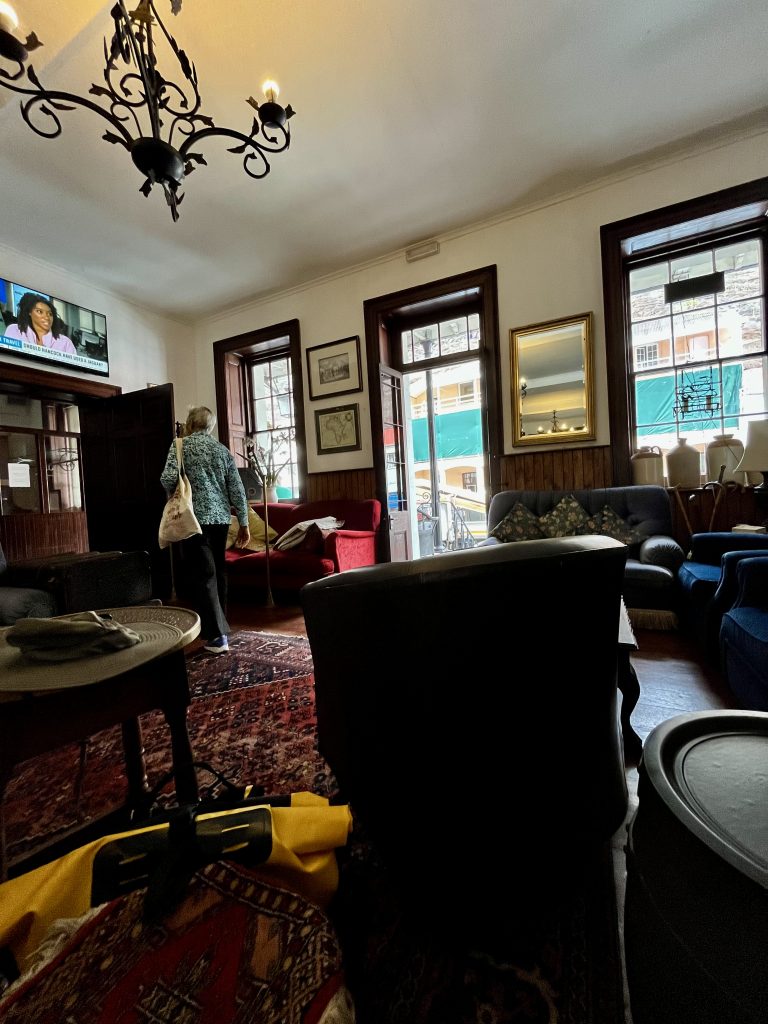 Die Zeit ist auch hier augenscheinlich stehen geblieben. Alter englischer, etwas angestaubter Charme, weht durch die Räume. Auch mein Brownie hat reichlich Zeit bekommen und staubt im Mund trocken von rechts nach links. Hmm… Dafür unterhalten wir uns sehr angeregt mit einem Einheimischen, auch, wenn wir nicht alles verstehen. Das gesprochene Englisch ist mit einem Dialekt versehen, ähnlich wie bei den Sch’tis in Frankreich. 😂 Dann knautscht auch Klaus noch seinen Apfelstrudel hinunter. Die Wände hier sind behängt mit Napoleon Bildnissen. Kein Plätzchen ist mehr frei.