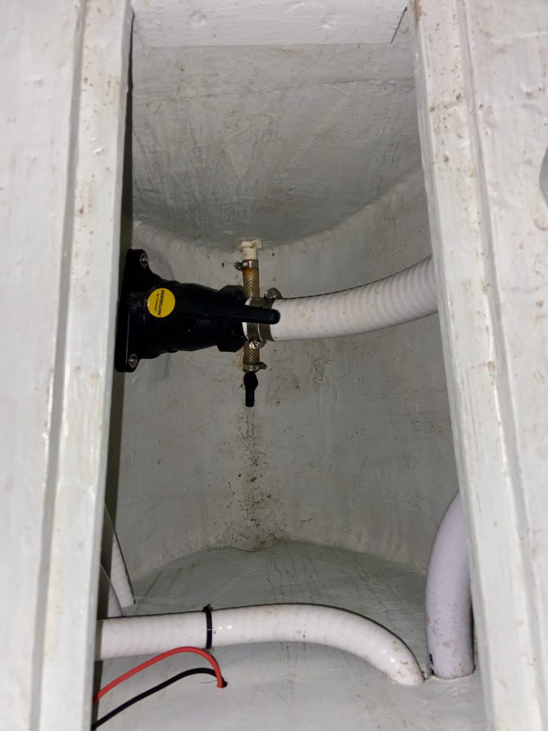 die aber eigentlich zugedreht sein sollte. Sie ist geöffnet, aber auch da kommt kein Wasser heraus. Gut. 😌 Jetzt müssen wir uns erst einmal sammeln. Mittlerweile schüttet es wie aus Kübeln. Morgen müssen wir mit Seawind und Mike über unser neues, großes Problem sprechen. Klaus braucht Fotos und schlägt sich nochmals nach vorne durch.