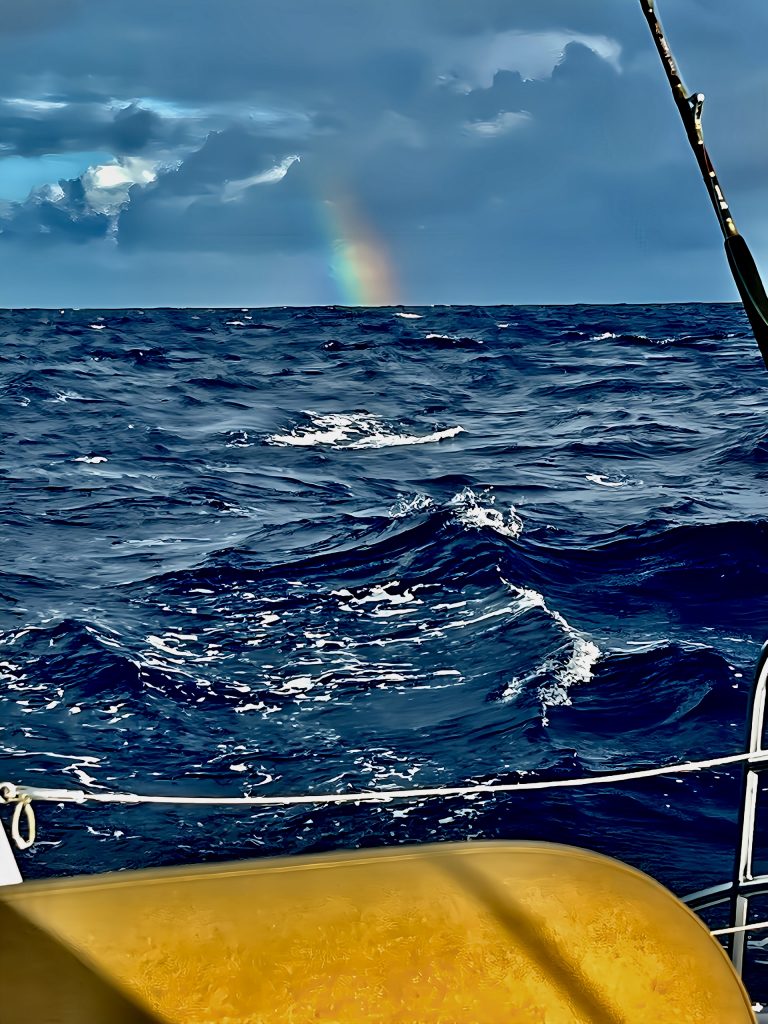 9:30 Uhr, der Tachoblick verrät, weitere 122 NM sind geschafft. Gar nicht so übel. Übrigens, das Meerwasser soll schon wieder 35 Grad haben, schwitz. Auch wird es kontinuierlich warm und schwüler. 😅 Der Wind schläft jetzt schon ein, wir segeln nur noch 3 bis 5 Knoten schnell, bzw. langsam.