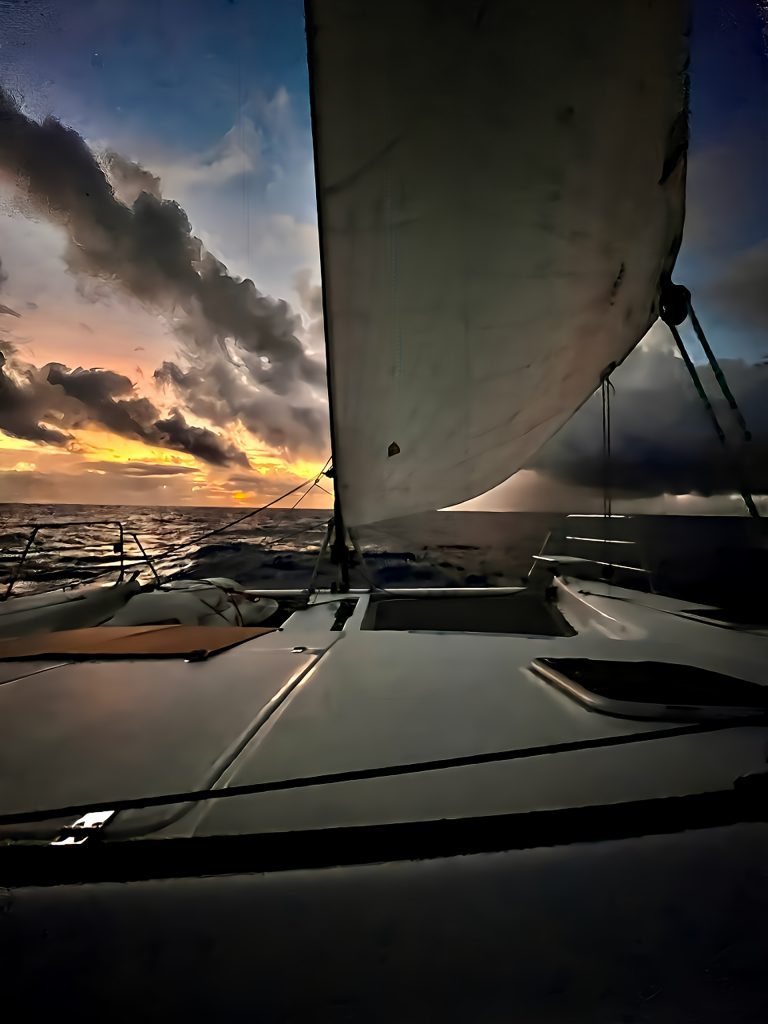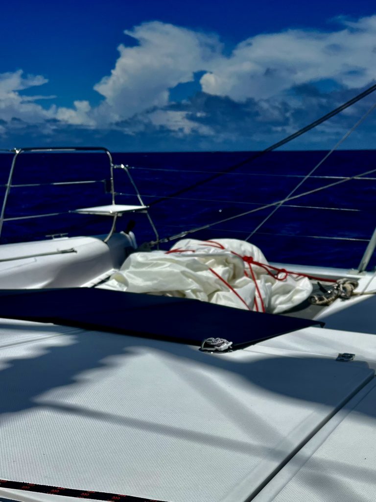 Mittlerweile ist unser Jib wieder draußen und wir juckeln mit 3 Knoten in der Spitze voran. Dann telefonieren, whatsAppen und e-Mailen wir uns die Finger wund. Mit Mike und dem Customer Service von Seawind, mit Janek, später noch mit meinem Bruder wegen Mutti, erneut mit dem Verwalter von Neuhofen und mit einem Heizungs-Wasserinstallateur aus Ludwigshafen und mit Larissa, die gerade in Mannheim beim Frisör sitzt. Grins 😊. Ach, und natürlich mit Elisabeth, der Reiseorganisatorin für unsere Brasilientour. Können wir diese Reise zum geplanten Termin überhaupt antreten? Wir hocken ja nun so ziemlich in einer Blackbox. Wie kann repariert werden? Wo kann repariert werden?? Wann kann repariert werden??? Wer kann überhaupt reparieren???? Fragen über Fragen malträtieren unsere Gehirnwindungen 🧠 😵💫. Apropos Elisabeth, Elisabeth meldet sich schon länger nicht mehr. Schon eine Woche nicht mehr! Davor war schon mal eine Woche Sendepause, wegen Krankheit. Hat sie vielleicht Denguefieber??? Oh, oh, oh,…