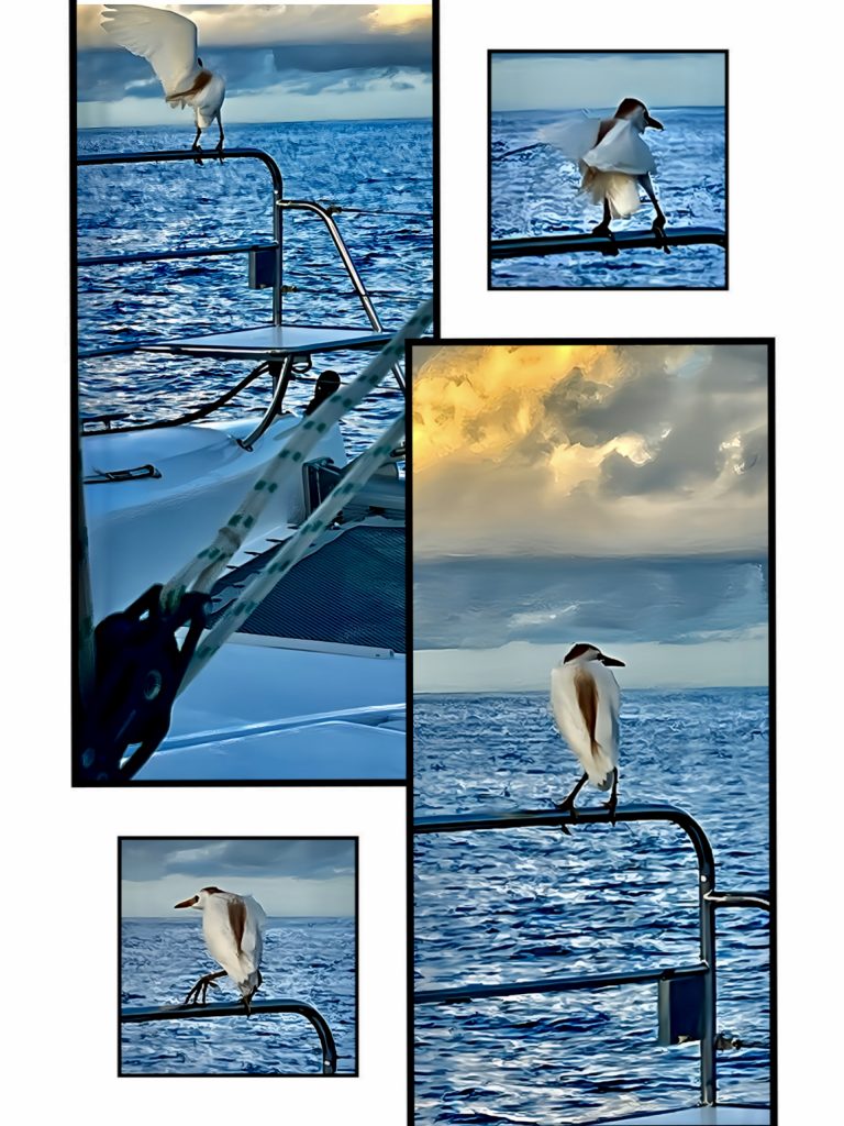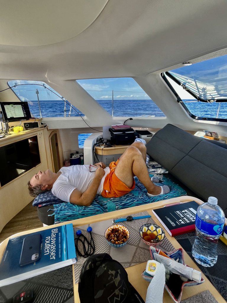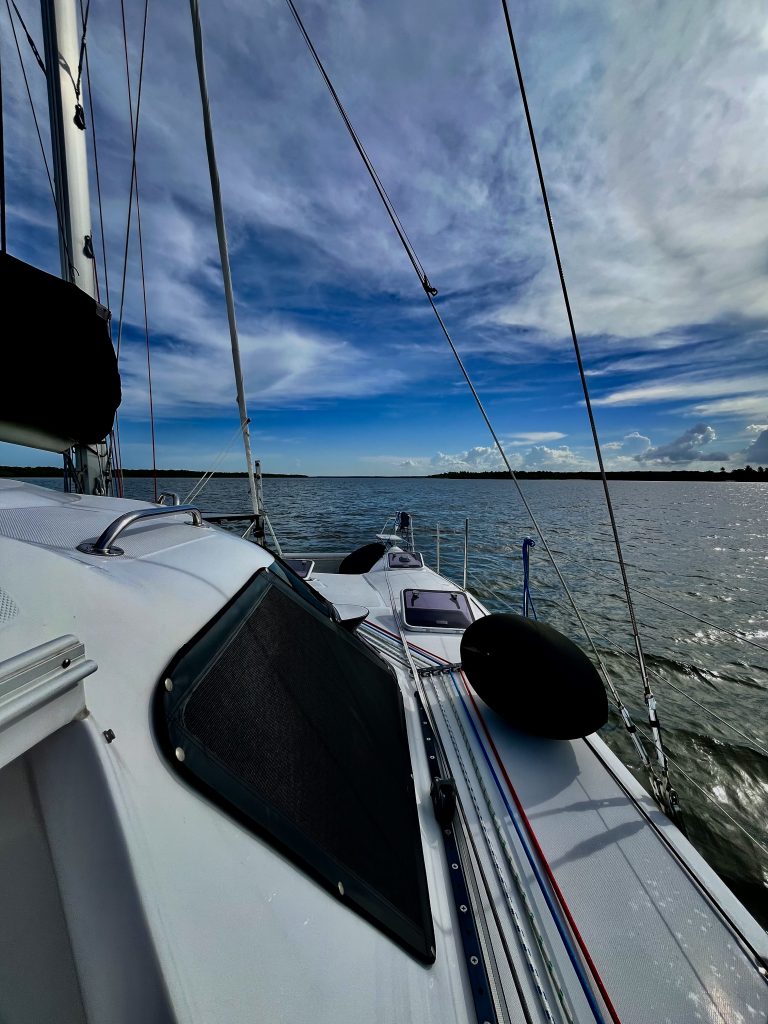 9:30 Uhr, 43 Seemeilen haben wir erdümpelt. 🤭 Naja, da haben wir ja nur noch 42 Seemeilen vor uns, und die 3 Stunden geschenkte Zeit, haben wir auch noch in petto.