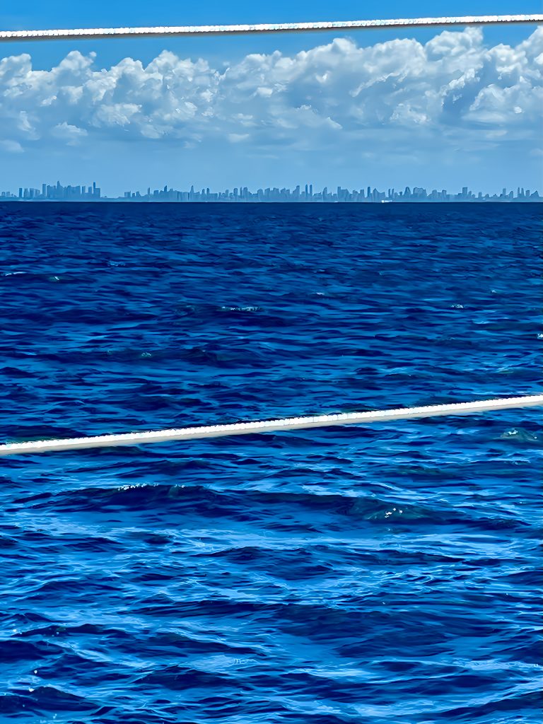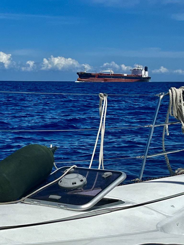 Wohl eher Wolkenkratzer in Sicht…, und ein Frachter passiert uns nochmals recht knapp.🫣