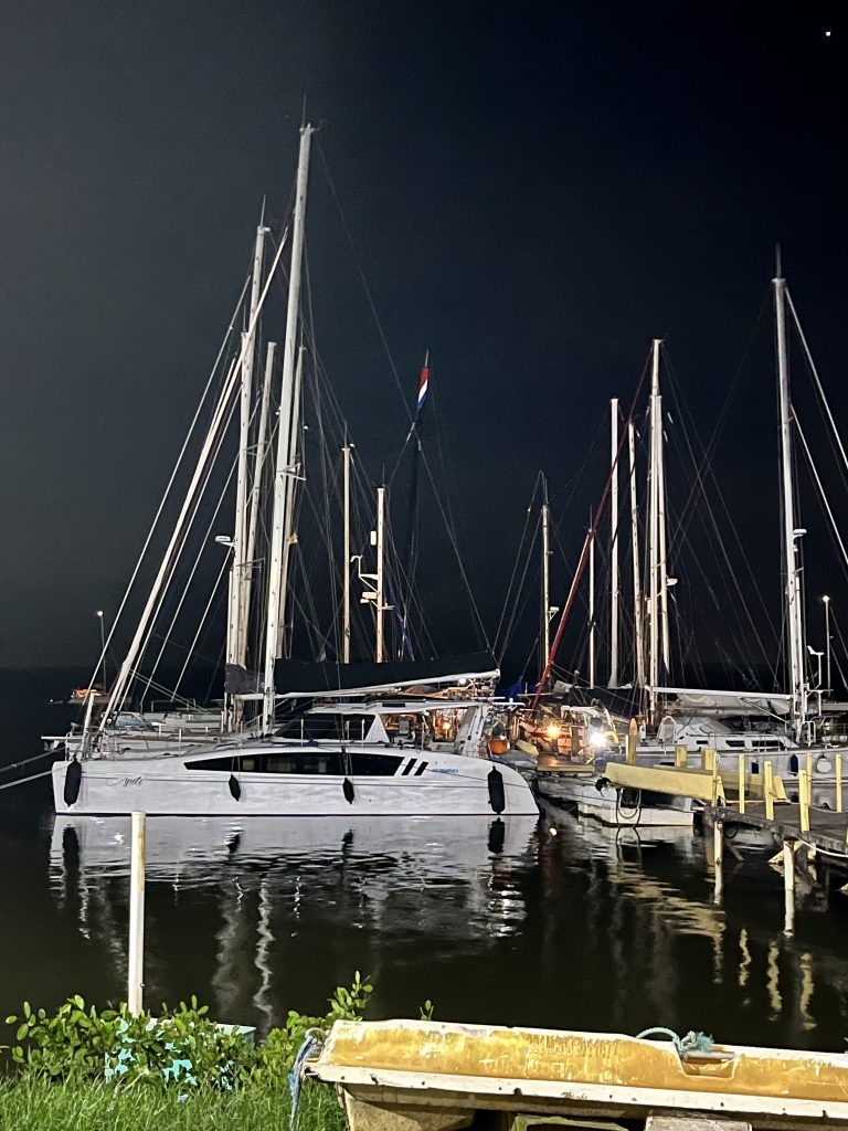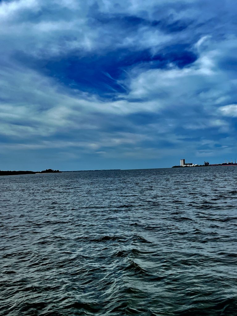Nun, eine Stunde wird’s noch dauern, bis wir bei der Marina sein werden. Jetzt ist auf jeden Fall mal Schluss mit dem klaren, blauen Wasser, jetzt geht’s wieder braun und schlammig zur Sache. 😏