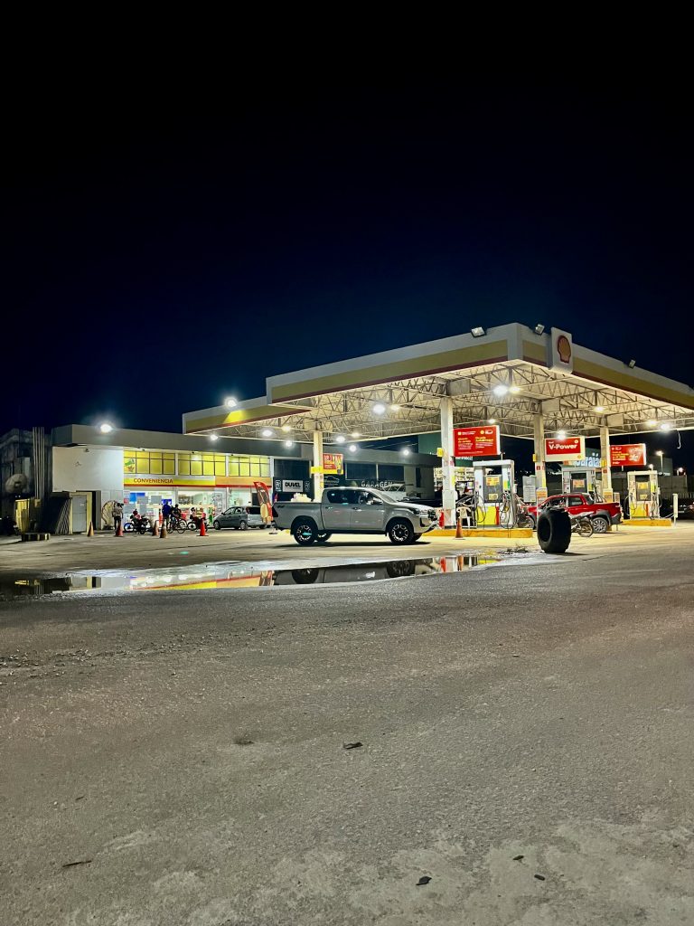 Na ob wir hier nicht nen eklatanten Fehler gemacht haben? Jeden Tag werden in Brasilien weit über 100 Menschen ermordet, ganz zu schweigen von der Überfallrate… 🫢. Aber Nico meinte ja, hier sei alles sicher. Ja meinte er da auch Jacaré Stadt??? Darauf will ich jetzt erstmal ein Eis von der Tanke. Wir können dort bestimmt mit Kreditkarte bezahlen, und bis uns das vierte Uber absagt, haben wir noch genug Zeit. Alla hopp. Ja was ist denn das? Da steht ja ein Geldautomat herinnen… 😳. Na das ist ja fein! Also Eis am Stil und Geld, wer sagt’s denn. Und,… das vierte Uber kommt! 👏 Nix wie zurück zum Boot,…