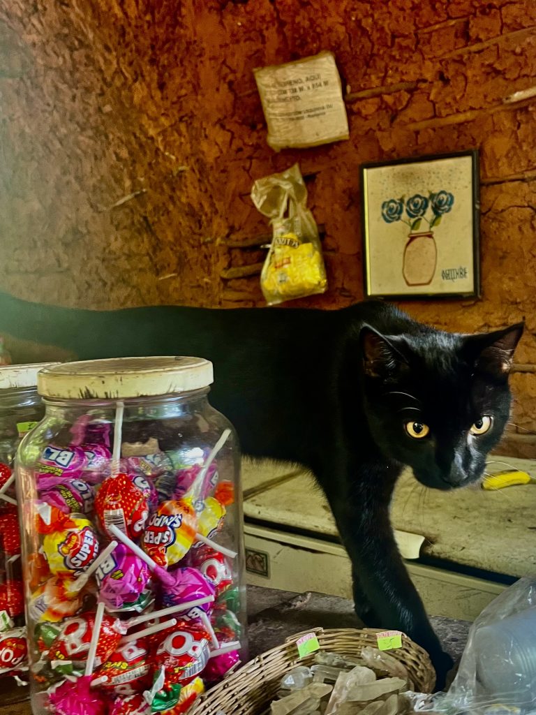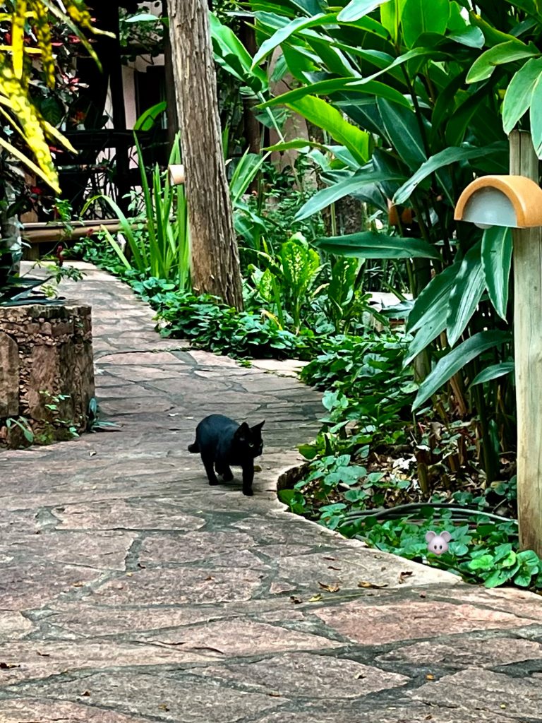 Die hübschen hauseigenen Katzen sind sowohl hier, als auch dort zu beobachten.