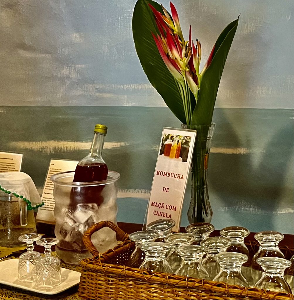 Auch ein Kombuchasaft, sowie verdauungsanregende Essigsäftchen werden geboten. Man kann draußen sitzen,…