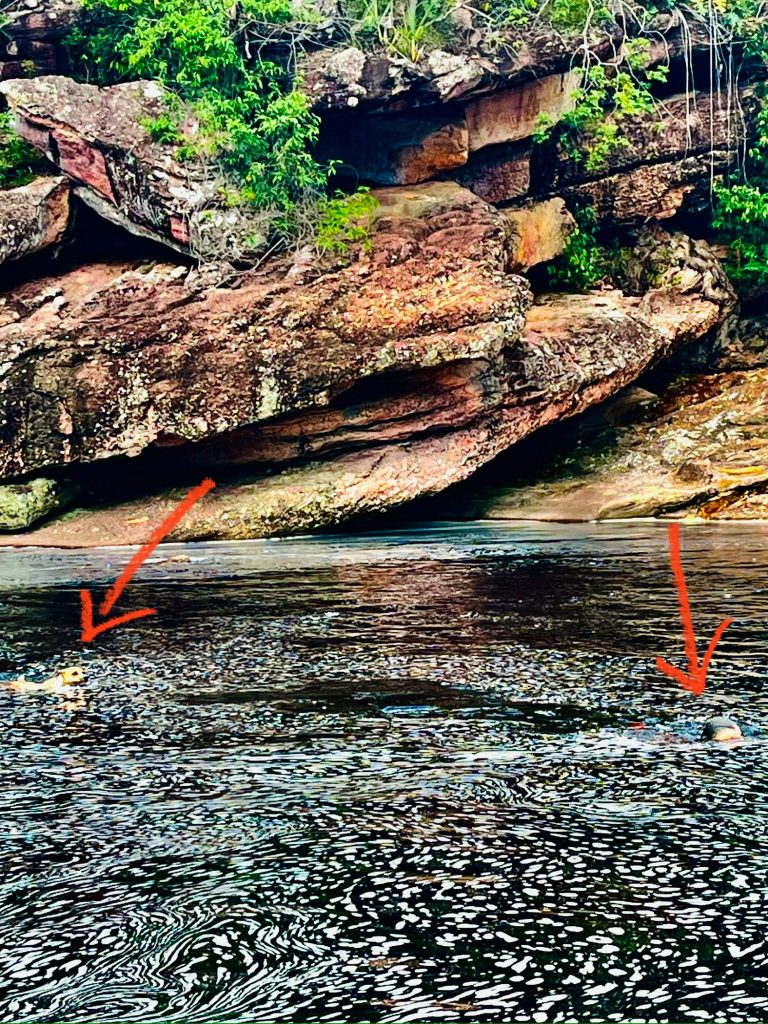 Vor lauter lauter vergisst Klaus, dass er eine Brille auf der Nase hat. Diese fliegt ihm dann auch prompt von dieser herunter, doch kann er sie gerade noch auffangen. 😅 Glück gehabt ! Dann hüpfe auch ich ins erfrischende, ockergelbe Wasser.