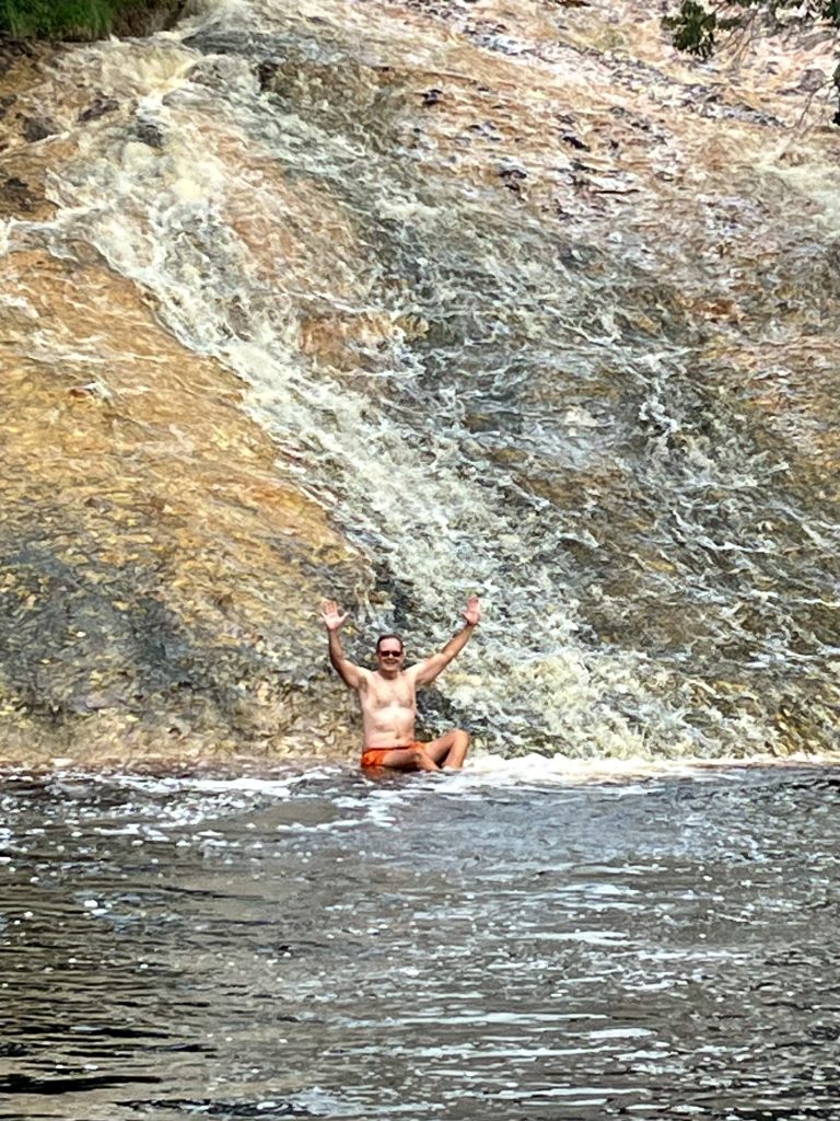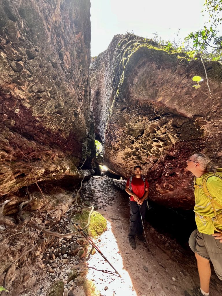 Von wegen gleich kommt der Wasserfall, erst müssen wir noch ‘’reißende’’ Bäche überqueren. Ohne Antonio’s helfende Hand, undenkbar… 😅.