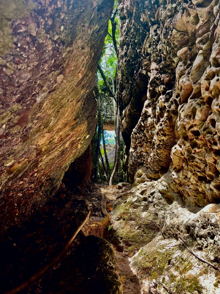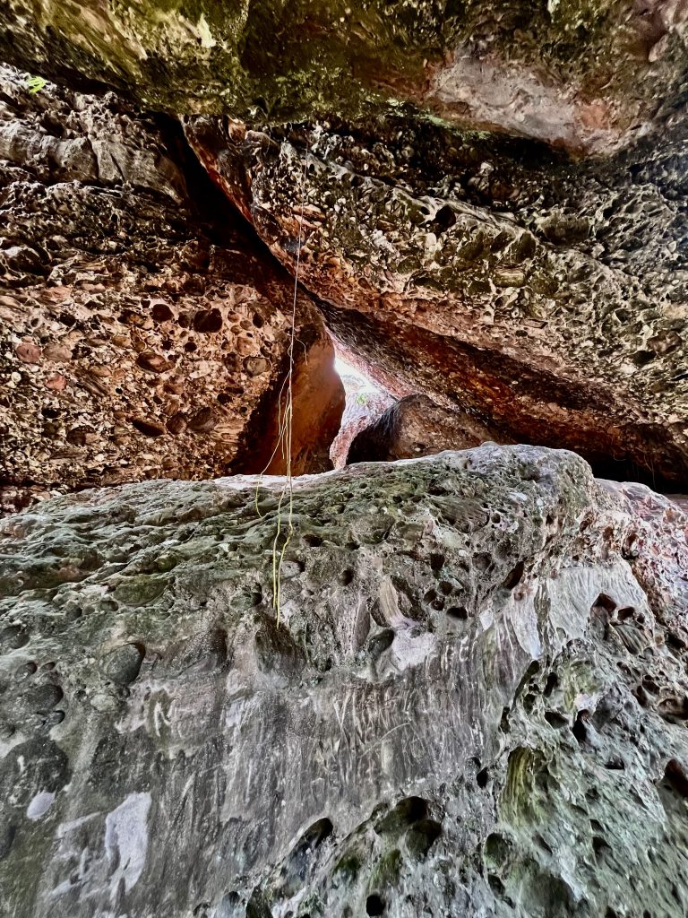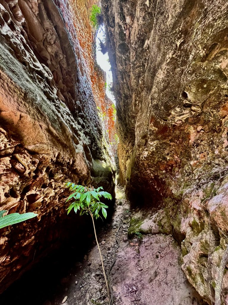 Ich bin noch ganz versunken in die wunderschönen Ein- und Ausblicke, da kommt Antonio schon mit der zweiten Wanderung um die Ecke. Da wir ja keine Essenspause machen wollen, möchte er mit uns rauf aufs Plateau, den Rundumblick genießen. Das würden mehrere Hunderte Höhenmeter und Kletterei bedeuten. Ach nee, das Plateau schenken wir uns lieber. Wenn ich das jetzt auch noch mache, dann geht morgen nichts mehr… Antonio ist nicht zufrieden. Hmm, dann laufen wir jetzt noch zu einem weiteren Wasserfall, meint er. Das wär nicht anstrengend. Wenn er wüsste… 😞. Allahopp, dann eben weiter.