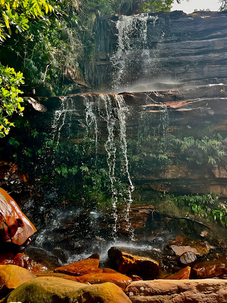 Dann erreichen wir wieder aufgestaute Wasserbecken und kurz danach den Wasserfall.