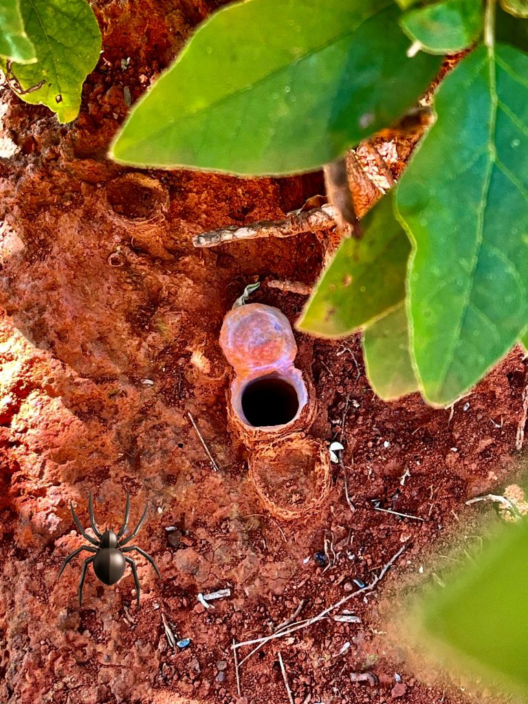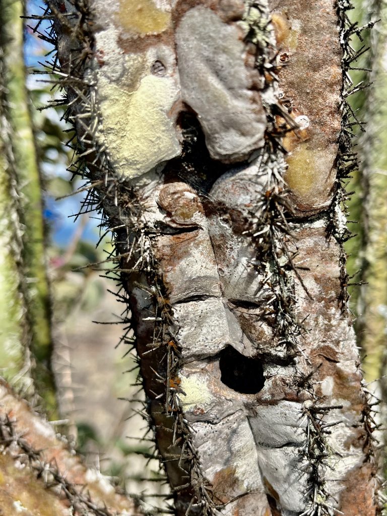 Ein Spinnenzuhause mit Deckeltür‼️ Auch kleben die Termiten überall ihre Gemeinschaftsbehausungen dran, und Verwandte der Baobabs sind zu bestaunen, aber stachelige Verwandte.