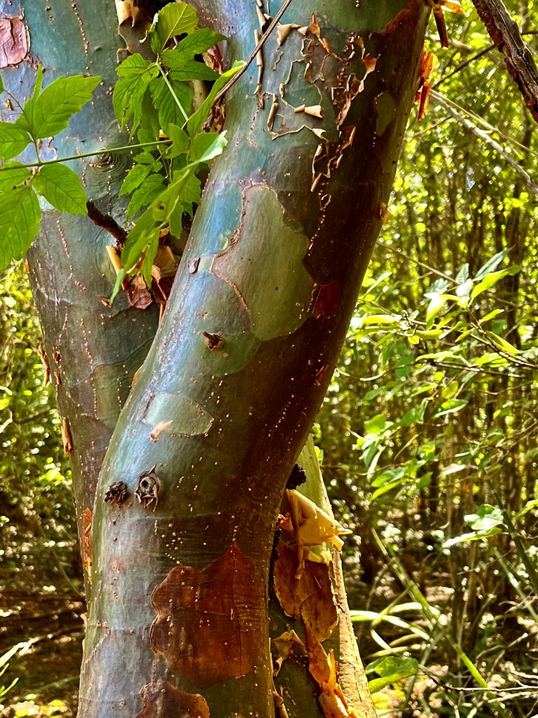 Dann werden uns noch Bäume gezeigt, die auch mit der Rinde Photosynthese betreiben, …