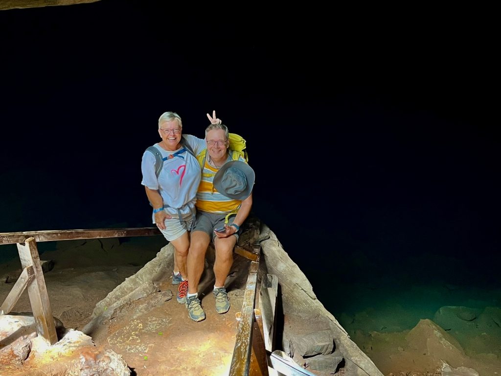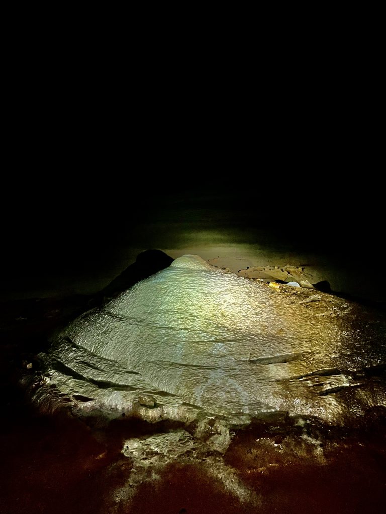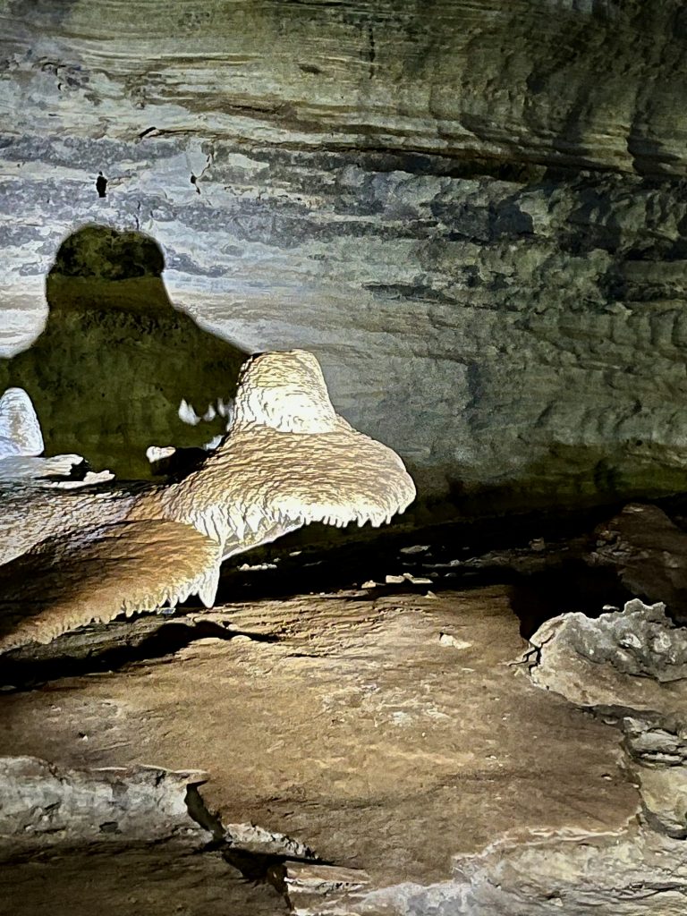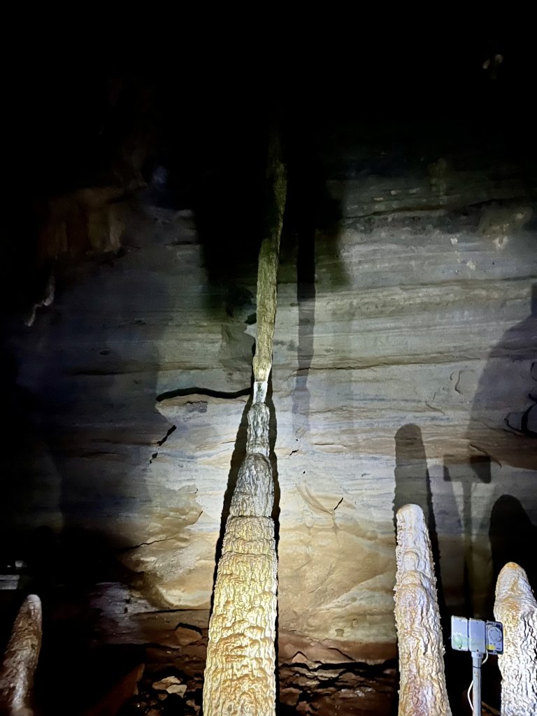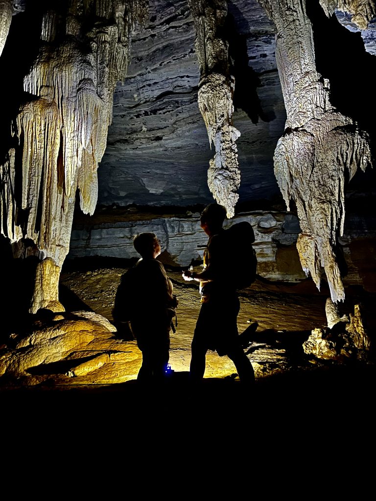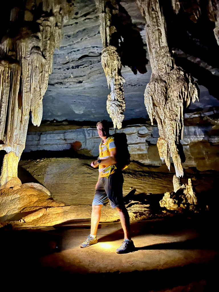 Dann gibt es noch eine kleine Meditationspause, wir setzen uns auf den Boden, schalten die Taschenlampen aus und lauschen dem Nichts. Danach versuchen wir noch Antonio oder den Höhlenguide zum Singen zu bringen, so wie in der tollen Höhle in Südafrika, klappt aber nicht. 😄 Dann laufen wir eben dem Ausgang entgegen.