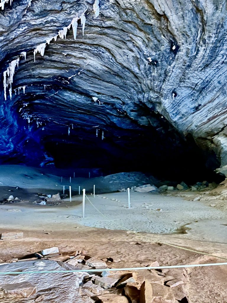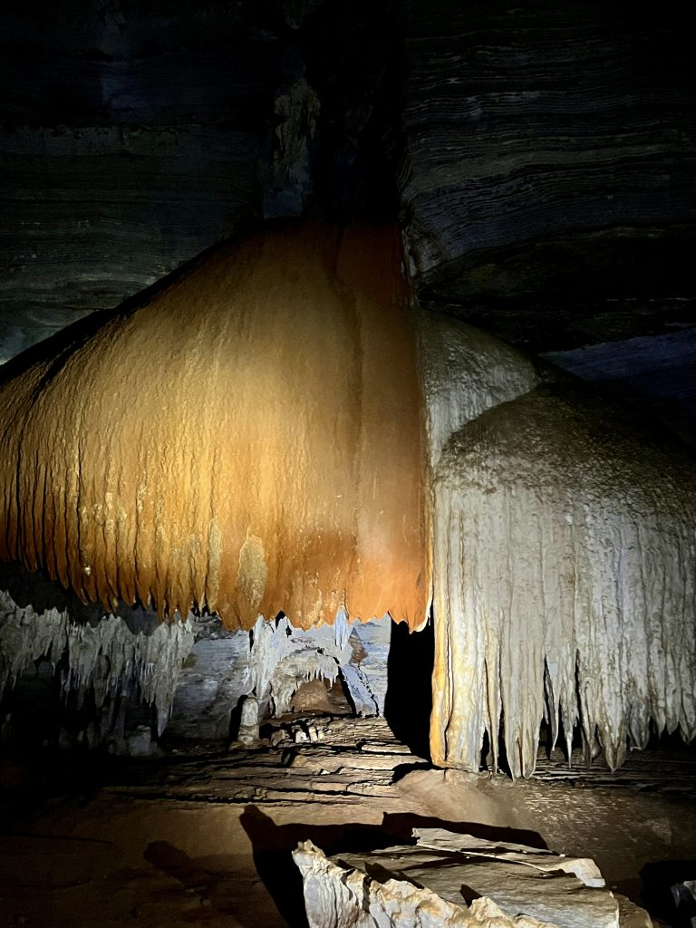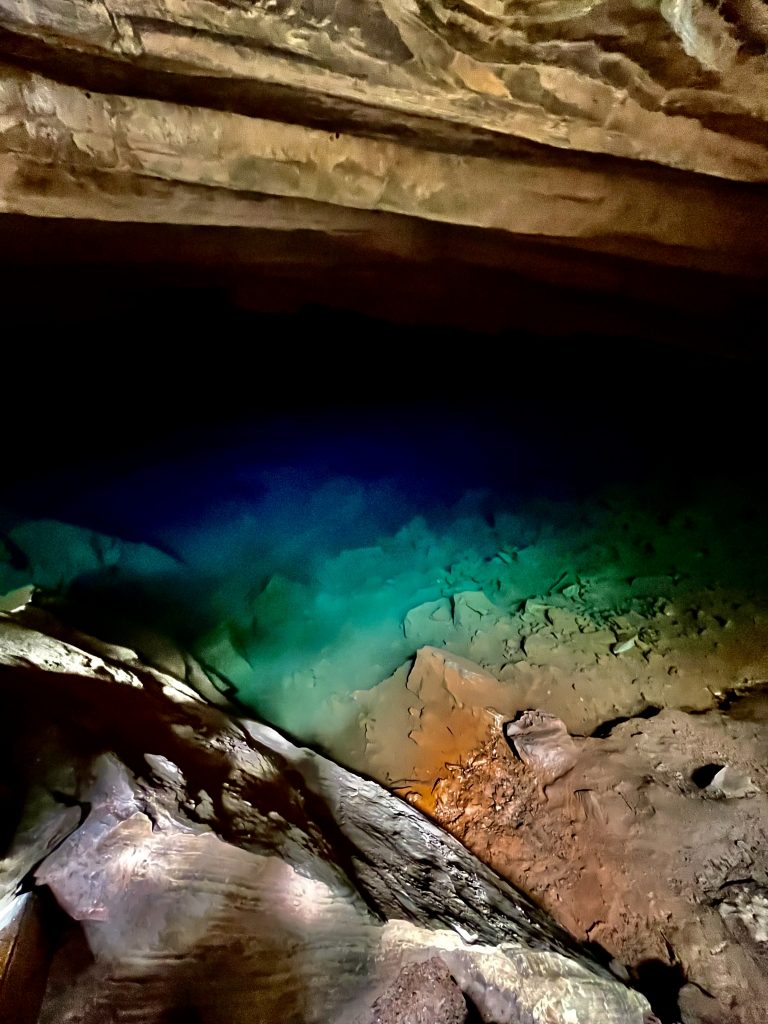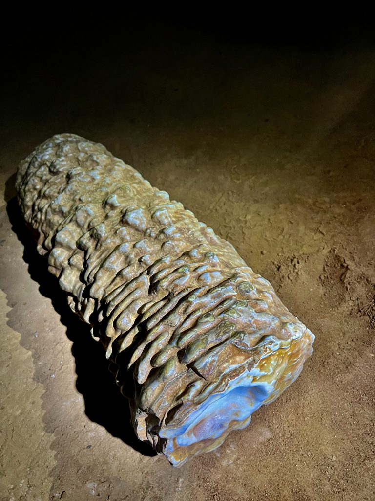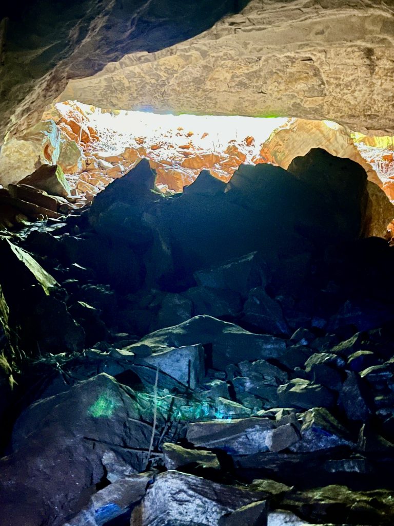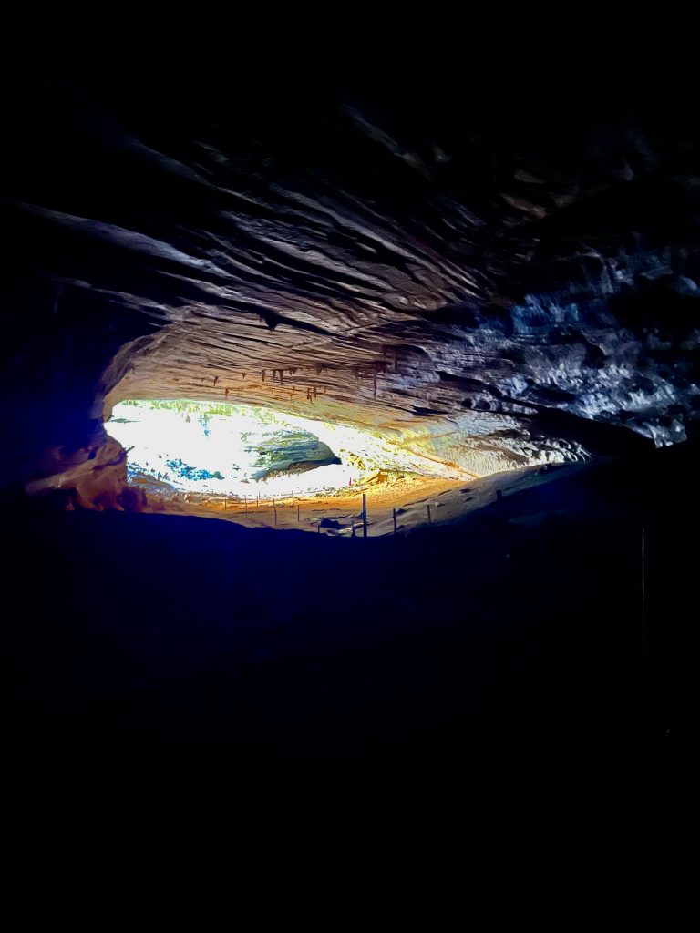 Dann gibt es noch eine kleine Meditationspause, wir setzen uns auf den Boden, schalten die Taschenlampen aus und lauschen dem Nichts. Danach versuchen wir noch Antonio oder den Höhlenguide zum Singen zu bringen, so wie in der tollen Höhle in Südafrika, klappt aber nicht. 😄 Dann laufen wir eben dem Ausgang entgegen.