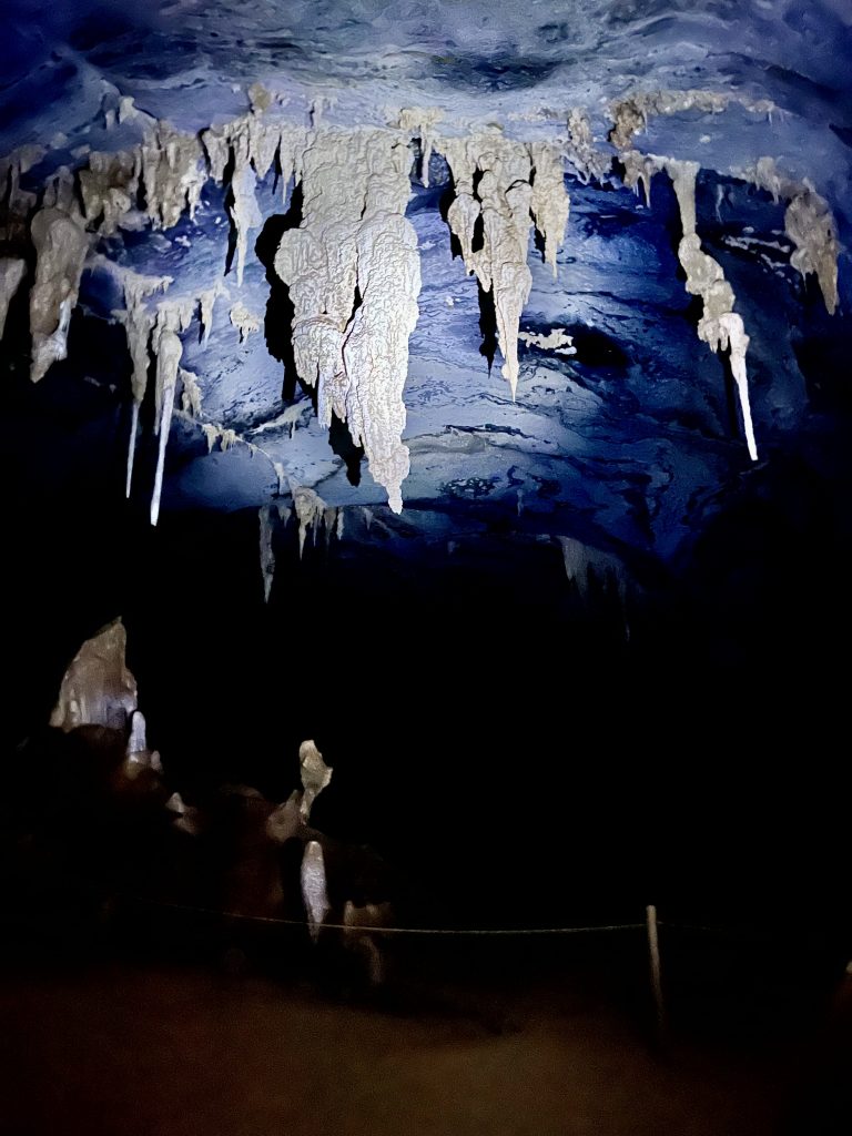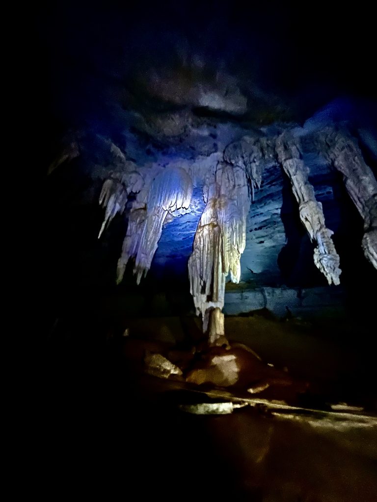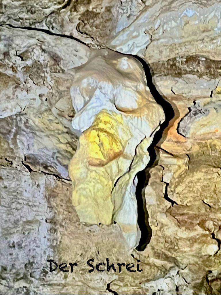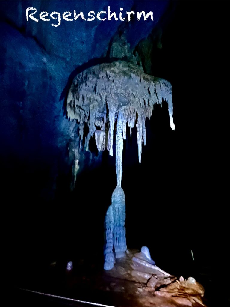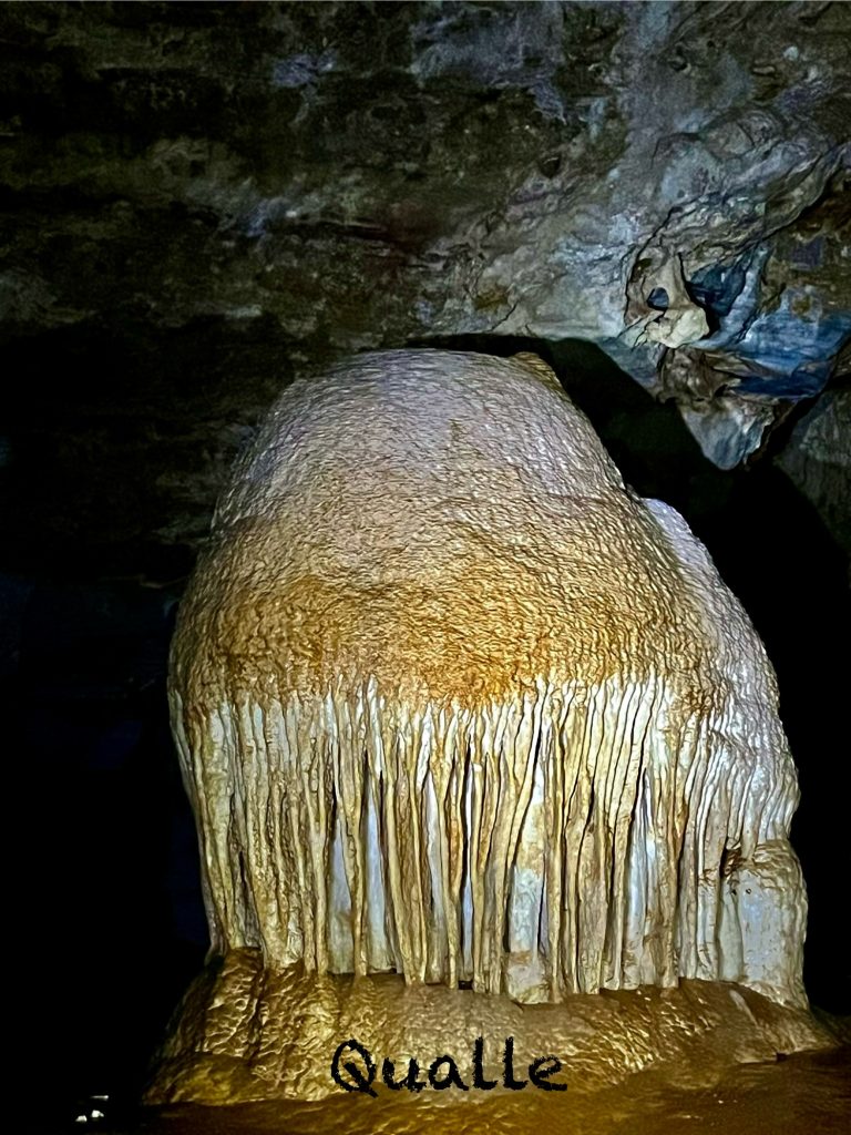 Hier gibt’s kein Licht, und daher bekommen wir Taschenlampen 🔦 in die Hand. Und was bekommen wir dann zu sehen? Genau, Tropfsteine in allen Varianten.
