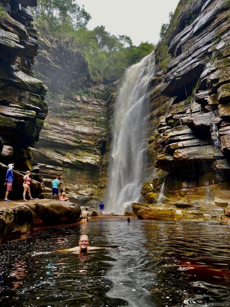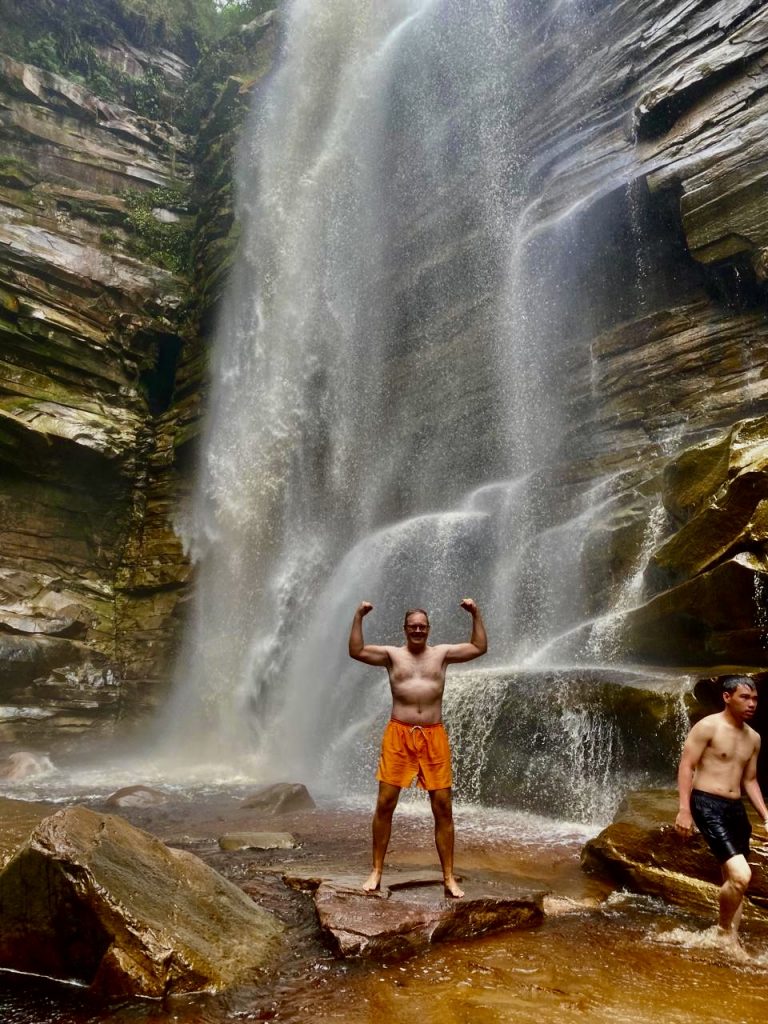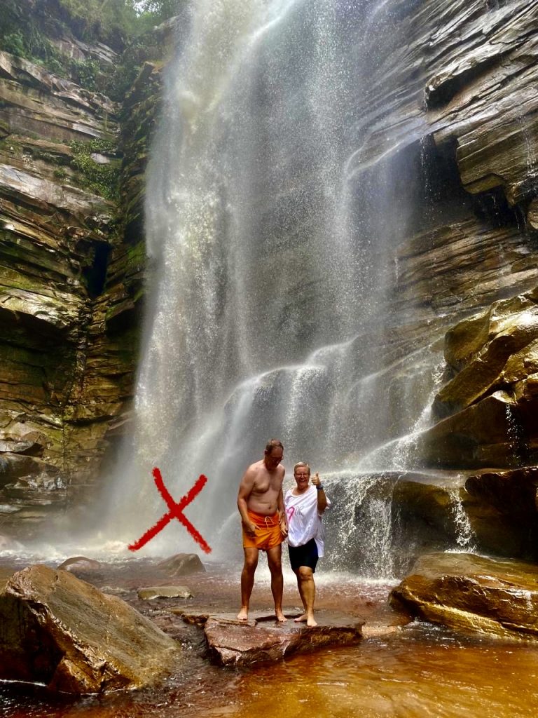 Die Sehenswürdigkeit trägt den Namen Cachoeira do Mosquito. Antonio sagt, das habe aber nichts mit Mücken zu tun. Also laufen wir jetzt nicht in ein Mückenloch. 👍