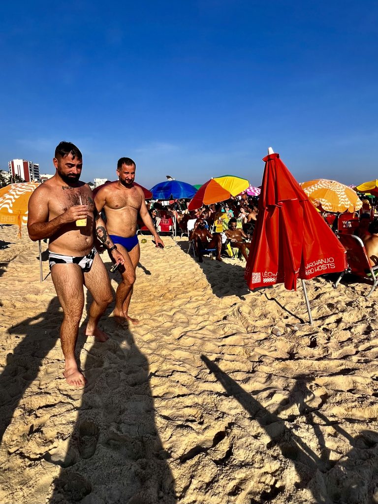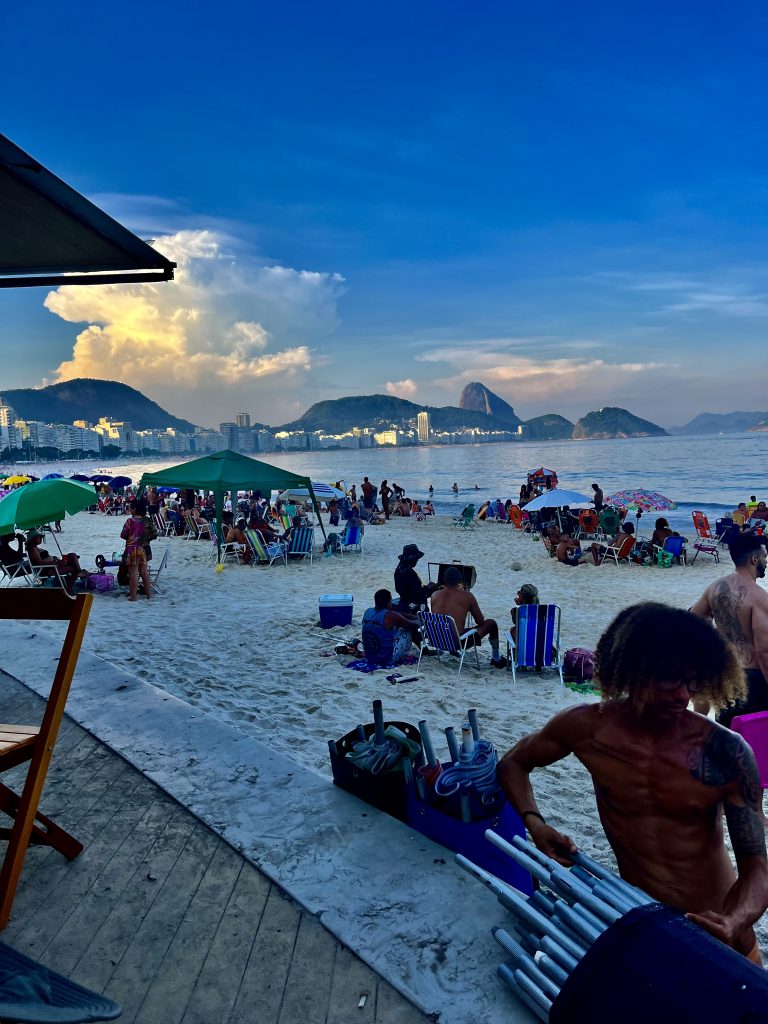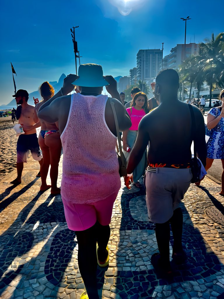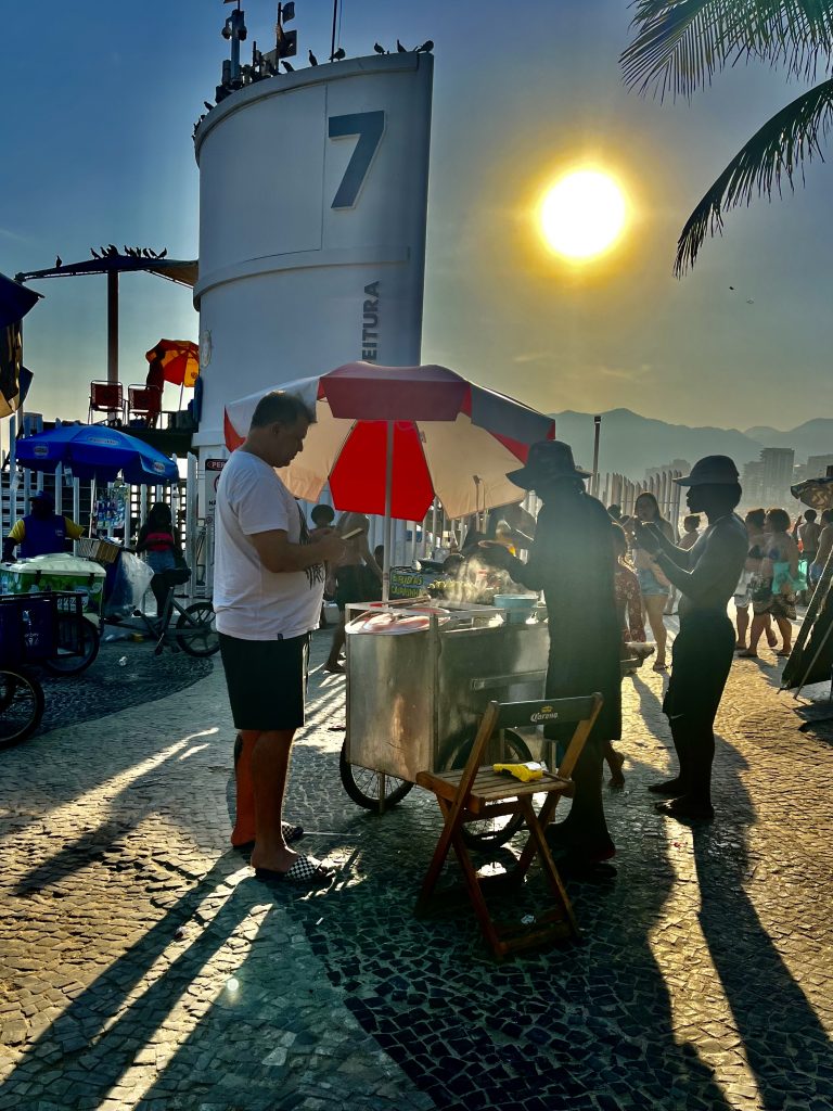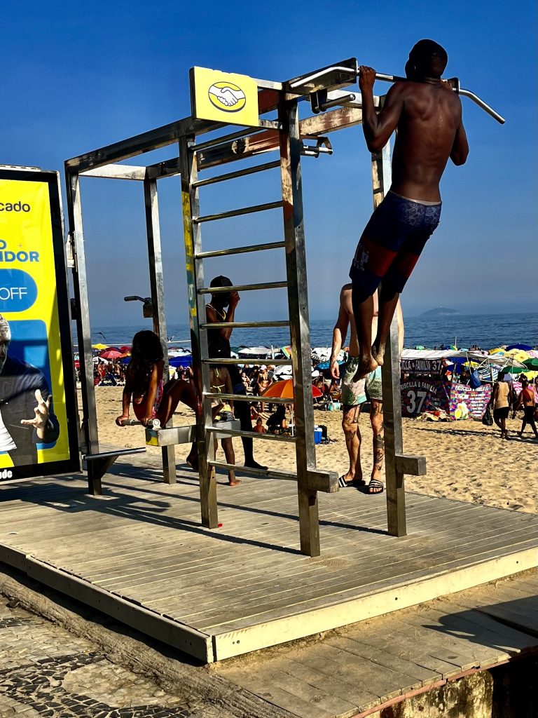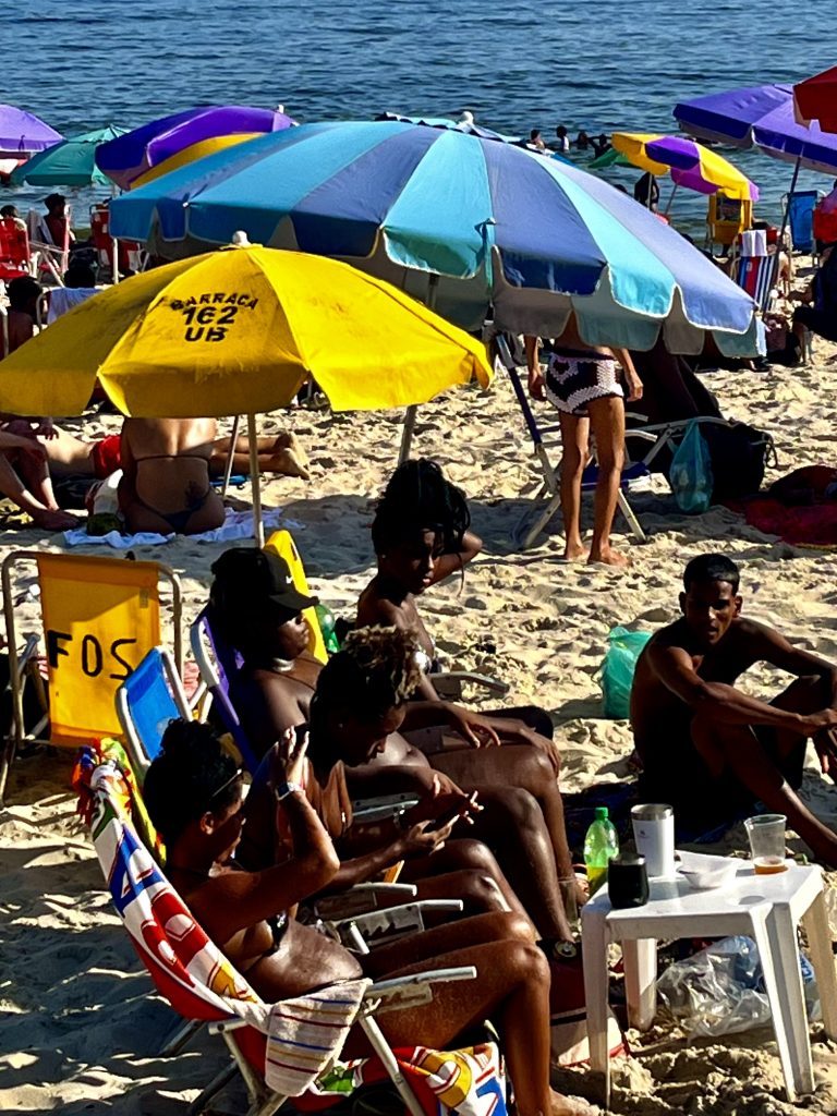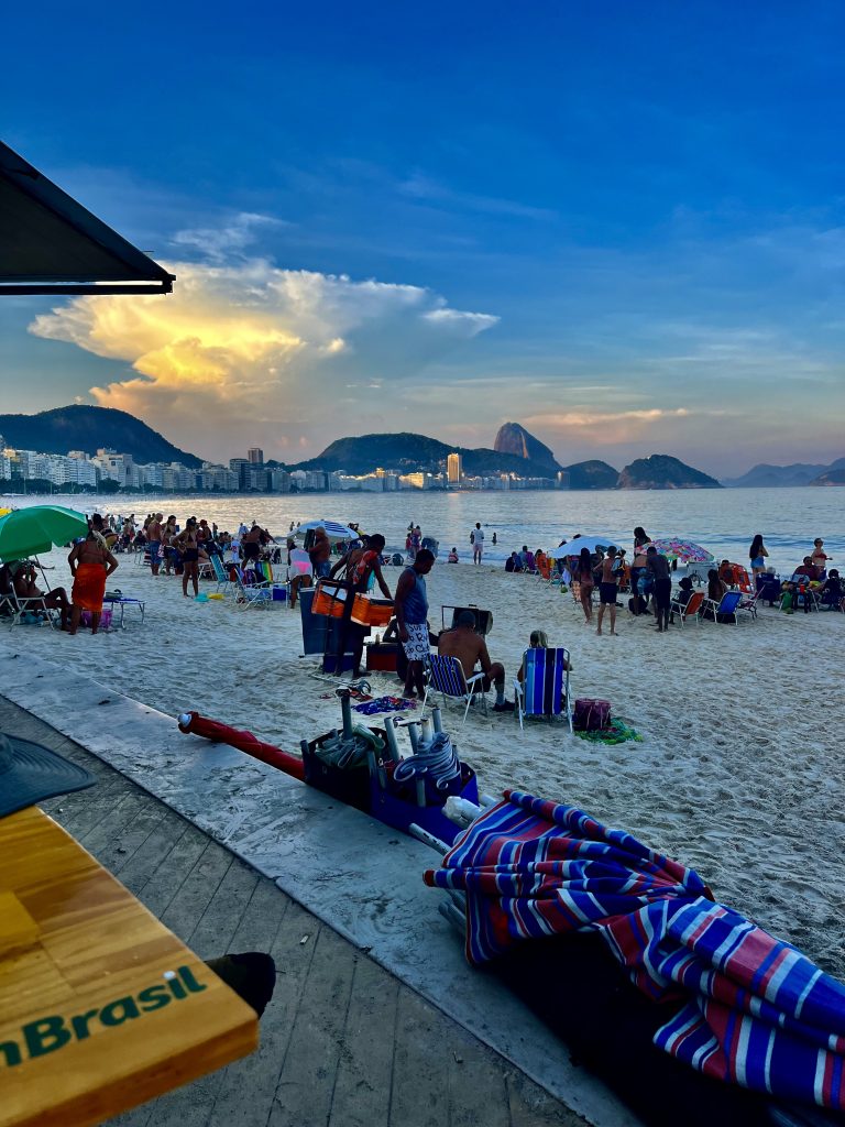 Ach, ich bin irgendwie ganz aufgedreht und furchtbar neugierig auf diese Stadt! Also flott etwas frischmachen und ab. Wir laufen los zum Ipanema Strand. Klaus geht ständig das Lied vom „Girl von Ipanema“ durch den Kopf. Er mag diesen Song sehr 🎶🎵🎶🎵…. Wenige Minuten später sind wir da. Ach du meine Güte, was ist denn hier los 😳! Menschenmassen liegen am Strand wie die sprichwörtlichen Sardinen. Auf den Wegen und der heute (Sonntag) für den Straßenverkehr gesperrten Straße, ist alles was Beine hat unterwegs. Es ist sehr heiß und es weht kein Lüftchen. Ich bin schier erschlagen von all den Eindrücken!