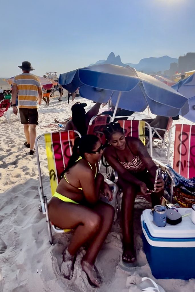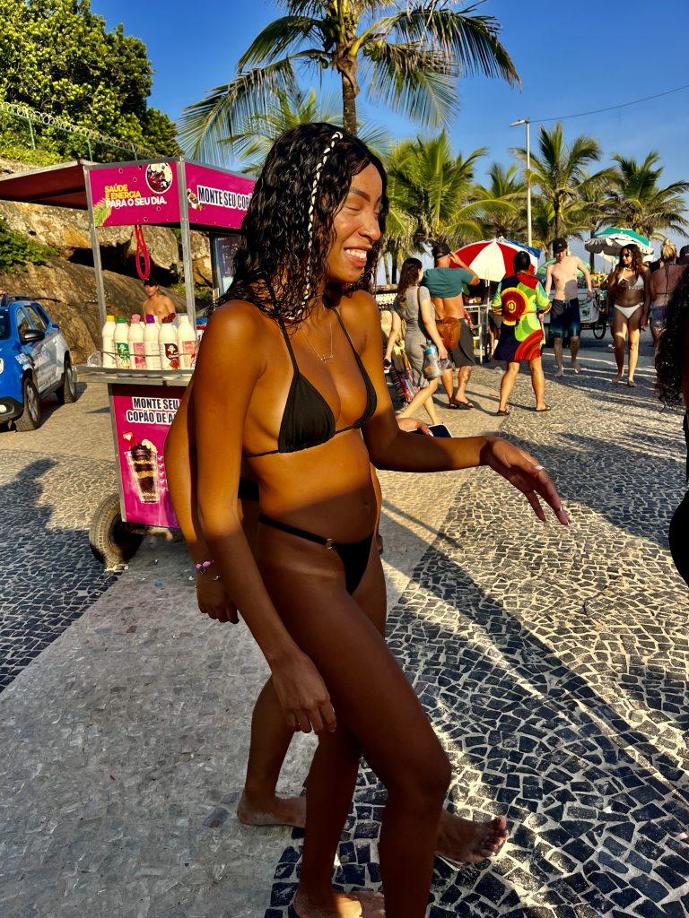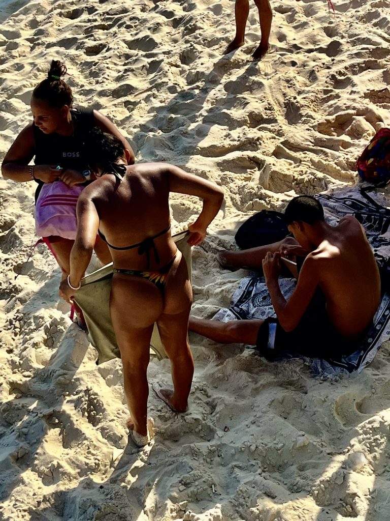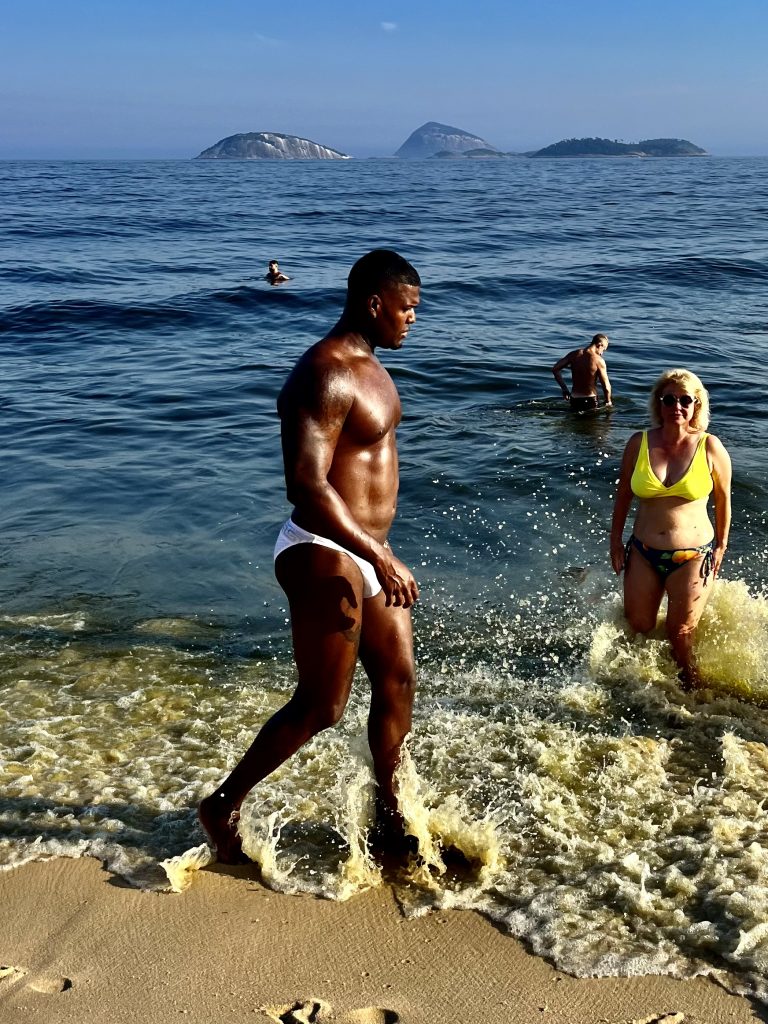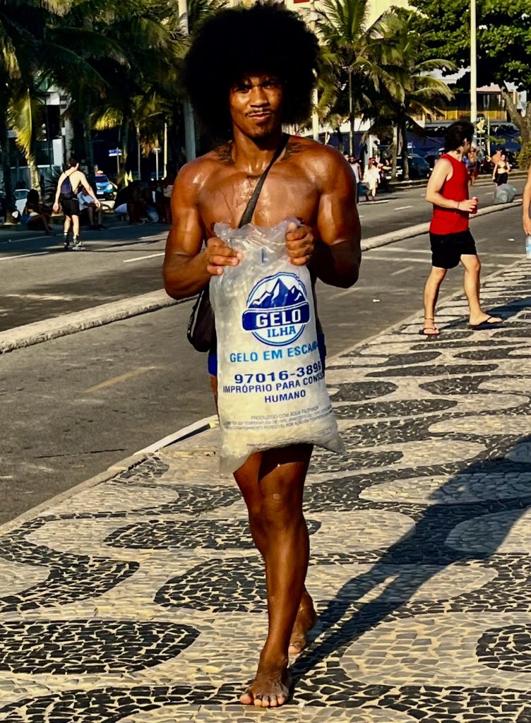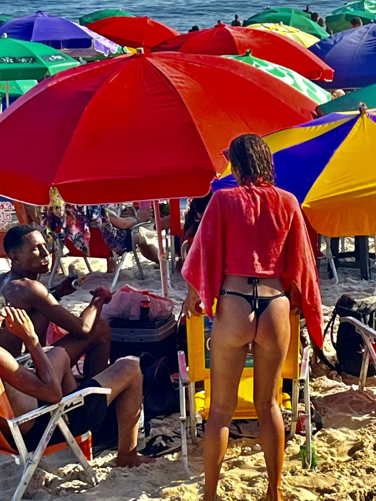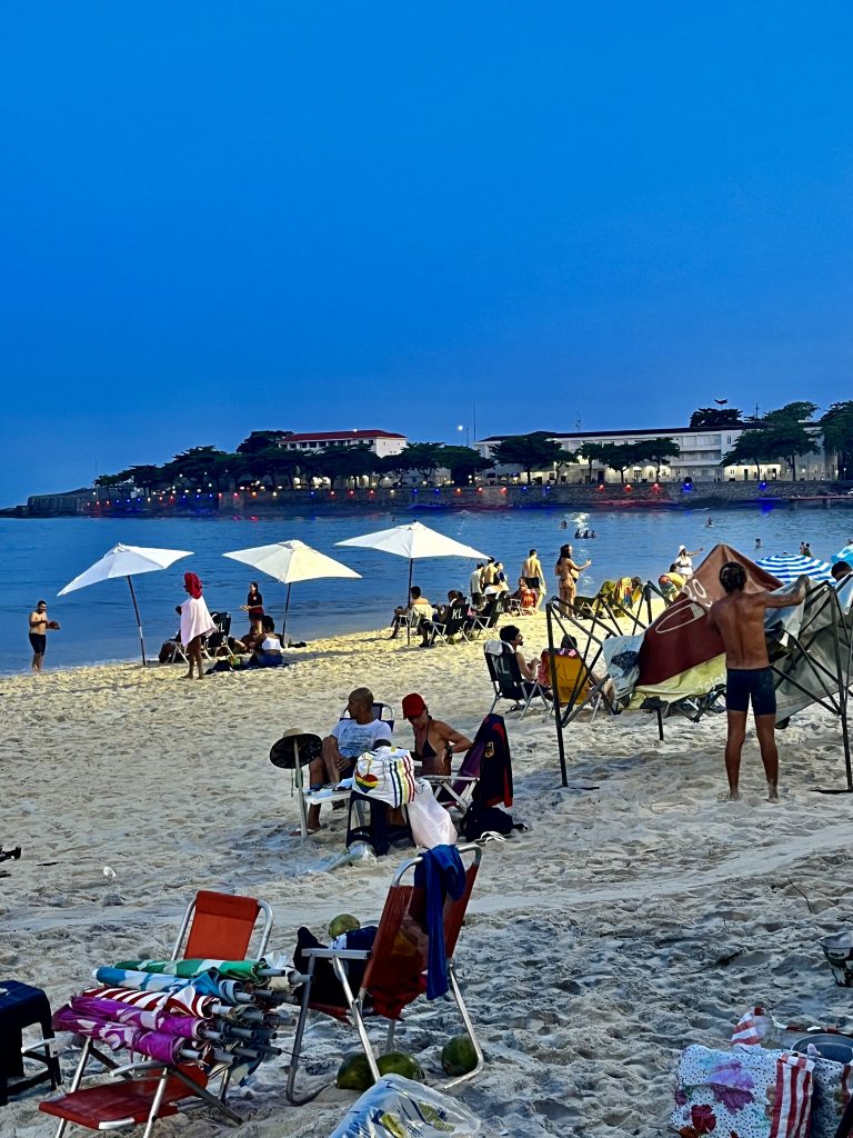 Ach, ich bin irgendwie ganz aufgedreht und furchtbar neugierig auf diese Stadt! Also flott etwas frischmachen und ab. Wir laufen los zum Ipanema Strand. Klaus geht ständig das Lied vom „Girl von Ipanema“ durch den Kopf. Er mag diesen Song sehr 🎶🎵🎶🎵…. Wenige Minuten später sind wir da. Ach du meine Güte, was ist denn hier los 😳! Menschenmassen liegen am Strand wie die sprichwörtlichen Sardinen. Auf den Wegen und der heute (Sonntag) für den Straßenverkehr gesperrten Straße, ist alles was Beine hat unterwegs. Es ist sehr heiß und es weht kein Lüftchen. Ich bin schier erschlagen von all den Eindrücken!