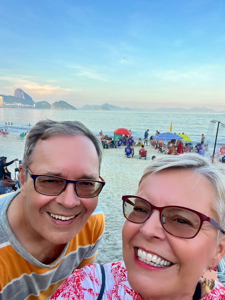 Wir werden mit Wasserdampf benebelt, wie das Frischgemüse im Supermarkt. Gar nicht schlecht! Unser dortiger Guide Peter, nein Pedro, steht schon bereit und empfängt uns freundlich. Pedro ist Brasilianer mit deutschen Eltern. Sie, Juden, flohen 1939 vor den Nazis nach Brasilien. Pedro kam dann erst hier auf die Welt und ist somit ein waschechter Brasilianer mit perfektem Deutsch. Er ist schon um die Achtzig aber erstaunlich fit❗️Er bringt uns erstmal ins Hotel „Atlantis Copacabana“