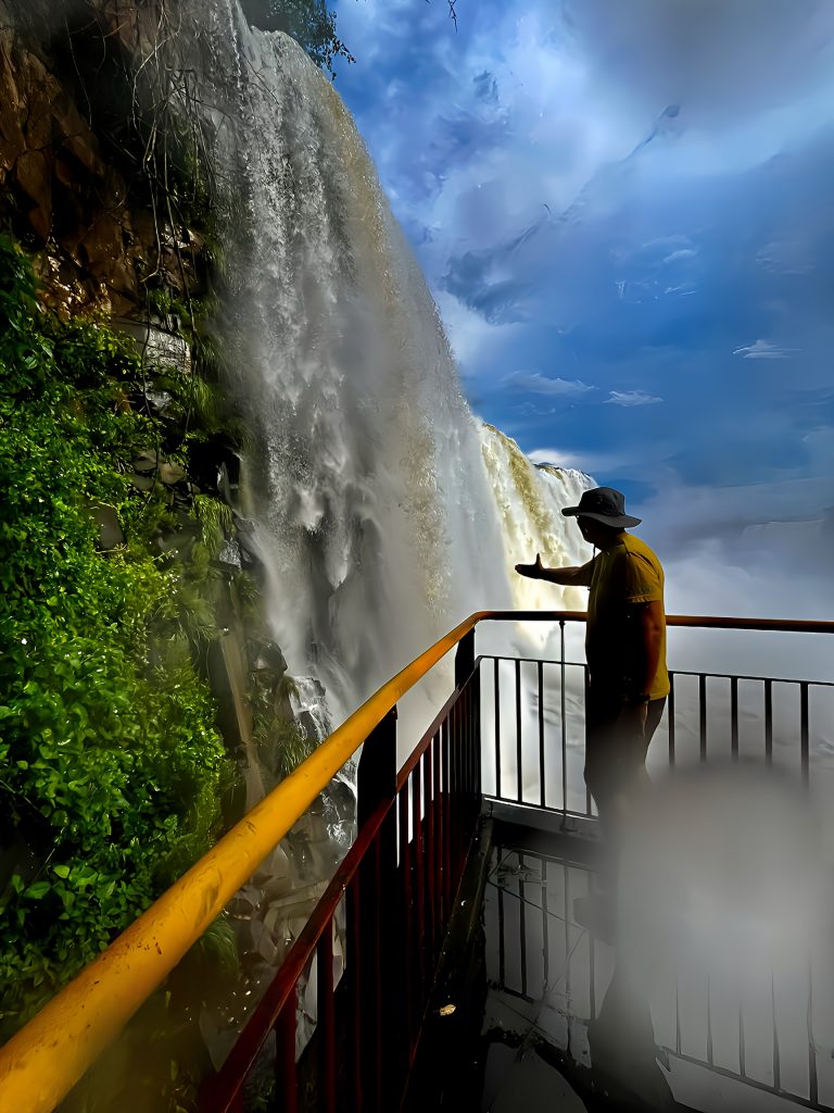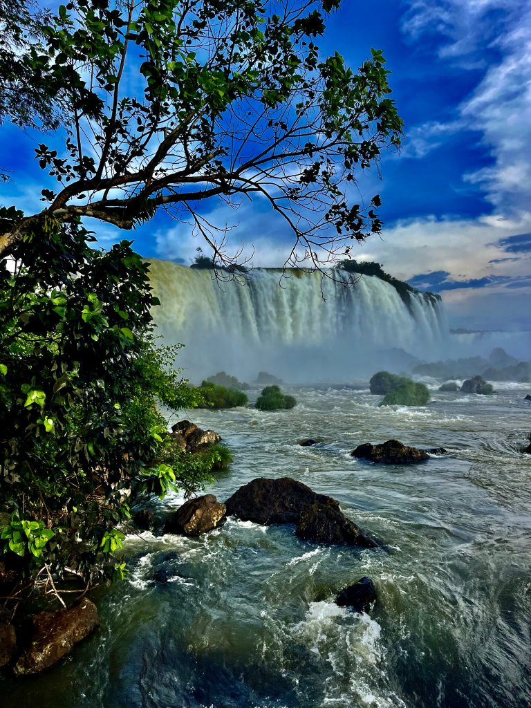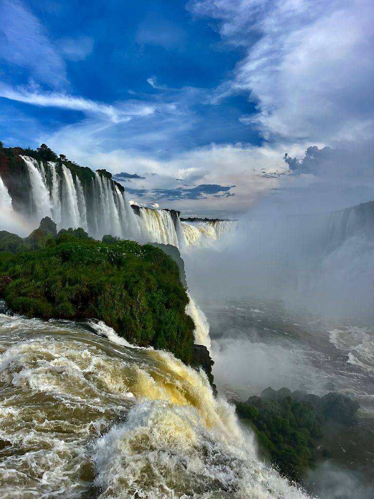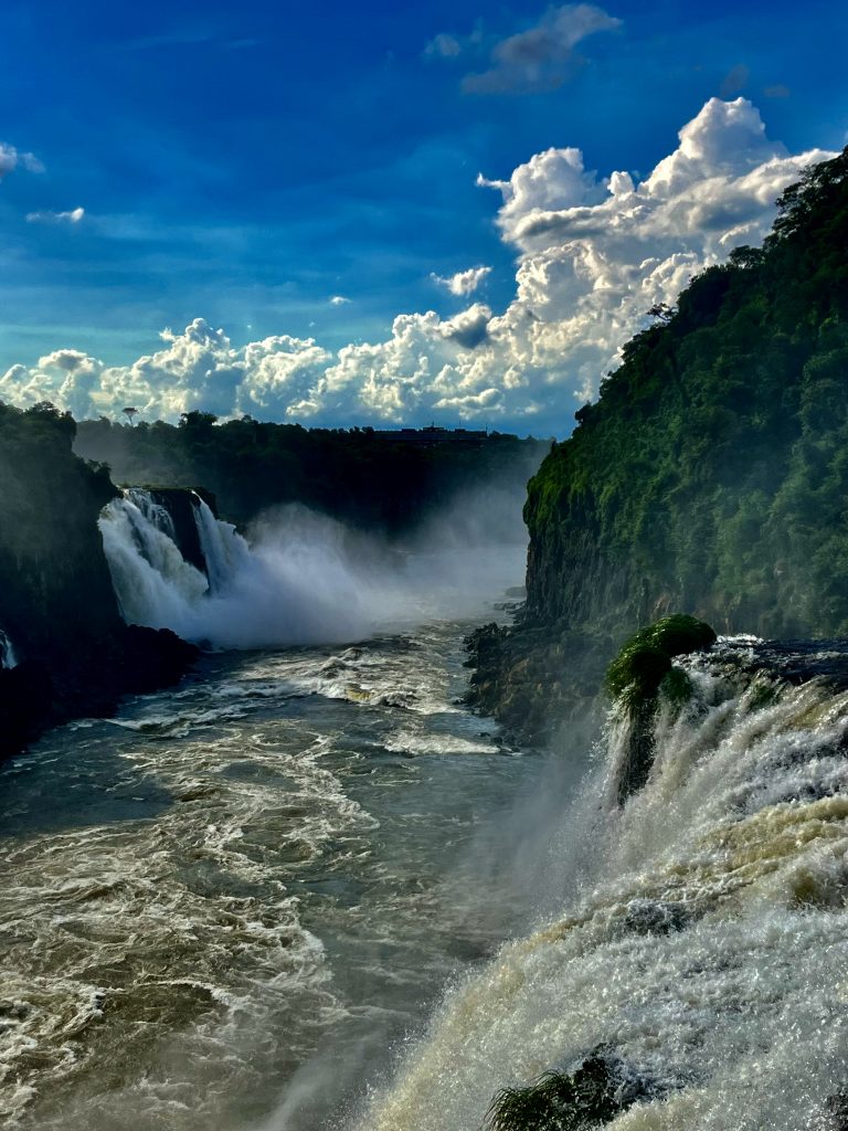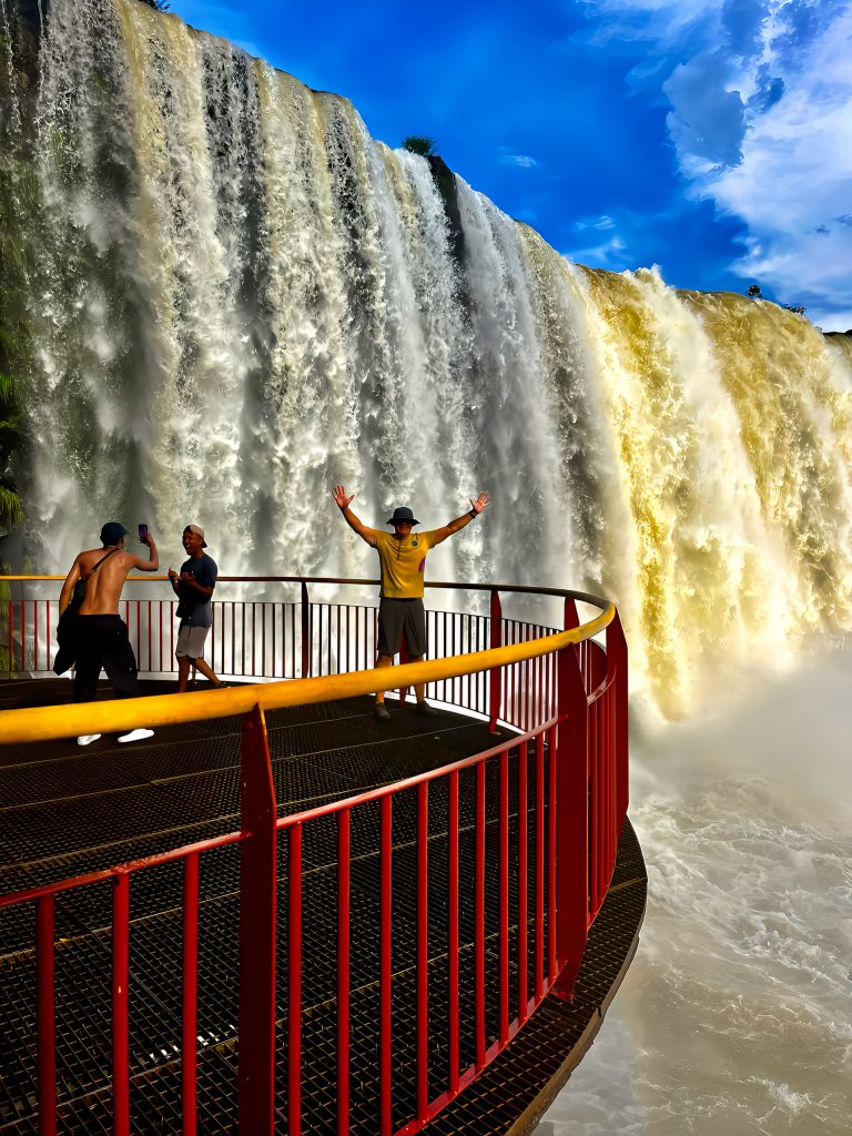 Hey 🤩, das ist nur der Anfang! Dieses, zu den 7 neuen Naturweltwundern gehörende Schauspiel, zählt 255 kleinere und 20 große Wasserfälle, in einer Ausdehnung von 2,7 Kilometern. Einige der großen Wasserfälle sind bis zu 82 Meter hoch. Gigantisch!! Damit sind diese Wasserfälle hier, breiter als die Victoria Falls (Simbabwe) und höher als die Niagarafälle (Kanada). Alle drei gehören zu den größten und mächtigsten Wasserfällen der Erde! Und wir sind hier, können die Iguazúfälle mit eigenen Augen sehen, ihre Kraft hören und spüren, bei strahlendem Sonnenschein❣️
