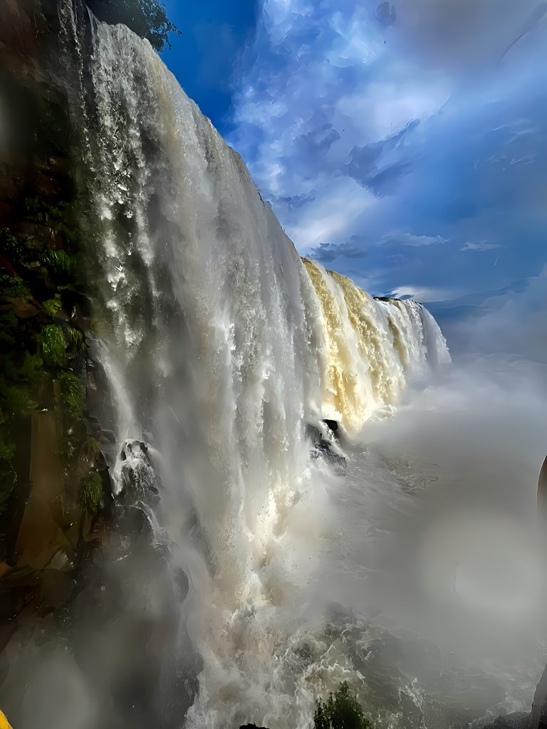Gurgelnd, tosend und spritzend, verschafft sich das Wasser Platz. Früher, viel früher, war es mal klar und weiß schäumend. Seit der großen Abholzungen im Amazonas und der folgenden Erodierungen, erscheint das Wasser bisweilen gelb bis ockerbraun.