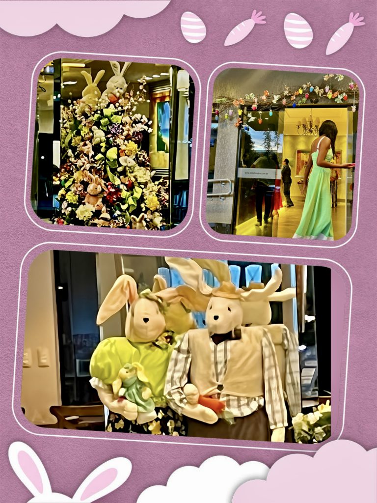 Zum Tagesabschluß laufen wir noch zum empfohlenen Steak House 🥩. Das Nachbarhotel ist schon komplett auf Ostern eingestellt. 🪺🐇