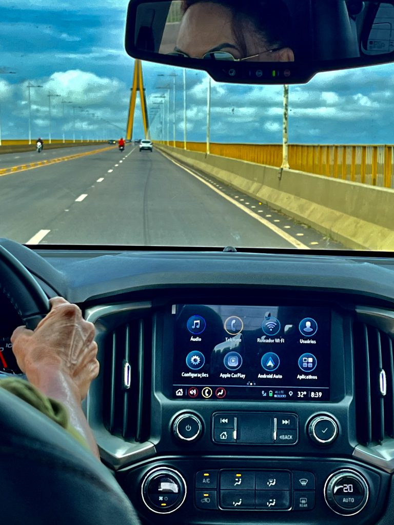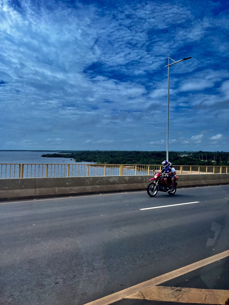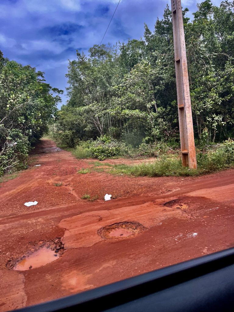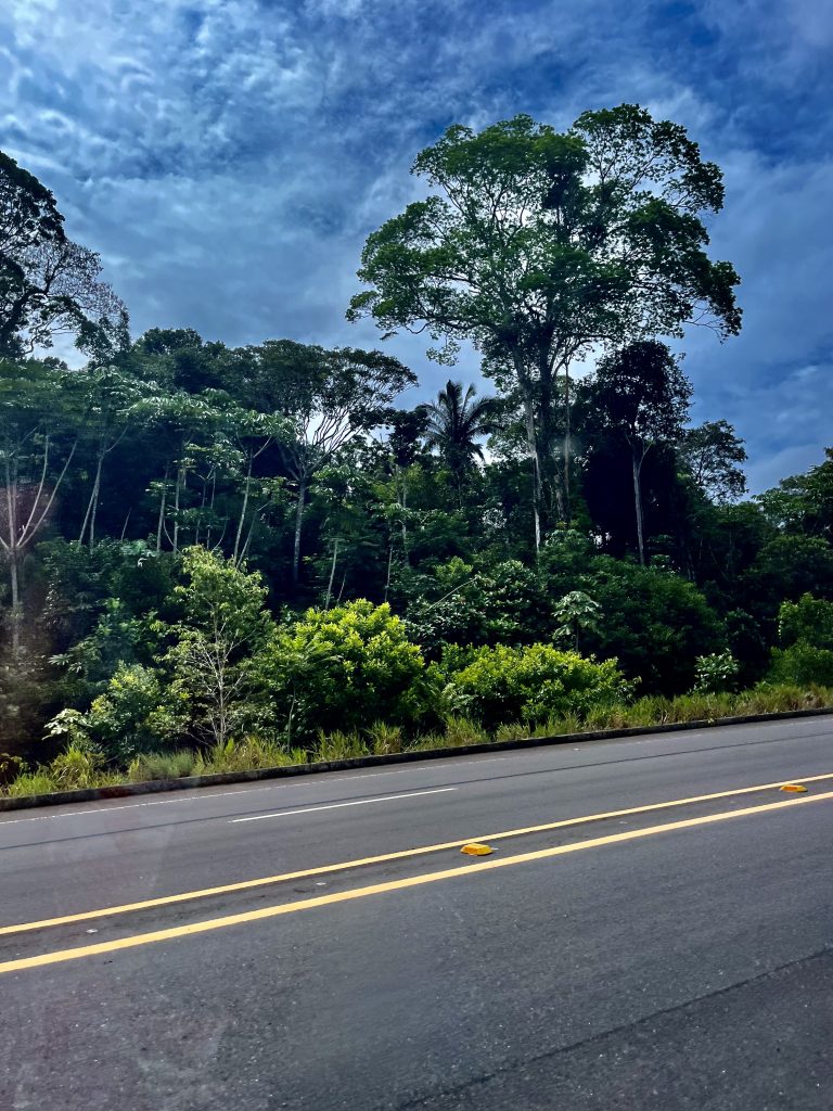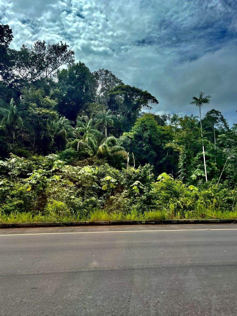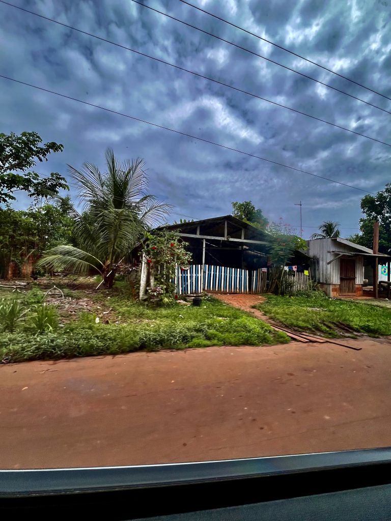 Über diesen schwarzen Fluss werden wir später noch zur Lodge tuckern. Nach einem guten Frühstück packen wir unsere 7 Sachen zusammen und warten in der Lobby auf unsere Abholung. Da steht sie schon da, die Chefin der Lodge höchstpersönlich. Sie, Fabiola und ihr Sohn holen uns mit ihrem Pick-up, einem Chrysler, ab. Wie jetzt? Nur uns beide? Ja! Nur uns beide. 😳 Wir dachten da würde eine ganze Gruppe Gäste abgeholt werden. Auch an unseren vorherigen Destinationen hatten wir nie damit gerechnet einen Guide für uns ganz allein zu haben. Tsss … Wir und unser Gepäck nehmen Platz, und werden nun 2 Stunden durchs Land zum Hafen chauffiert, um von dort mit dem Boot weitergebracht zu werden. Es geht durch Manaus und aus Manaus heraus, …